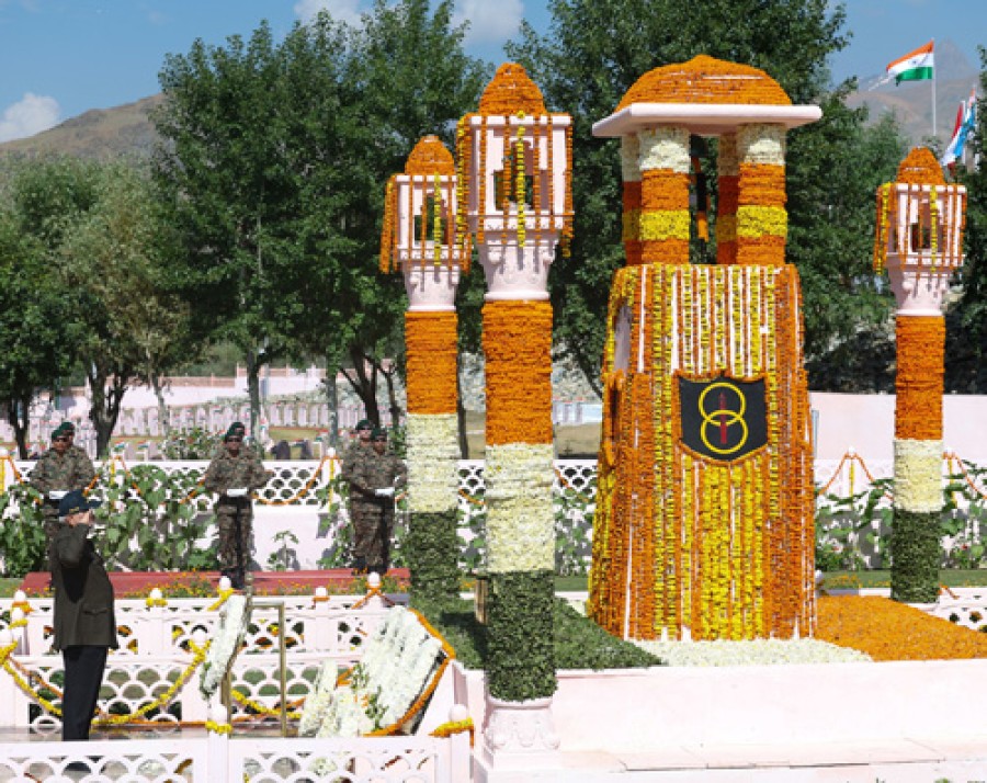 द्रास (लद्दाख)। प्रधानमंत्री नरेंद्र मोदी 25वां कारगिल विजय मनाने केलिए द्रास (लद्दाख) पहुंचे और सैनिकों केबीच कहाकि कारगिल विजय दिवस देशके गर्व और स्वाभिमान का पर्व है। उन्होंने कहाकि कारगिल विजय किसी सरकार या किसी राजनीतिक दल की विजय नहीं थी, ये विजय देश और उसकी विरासत की विजय थी। प्रधानमंत्री ने द्रास में कारगिल युद्ध स्मारक पर जाकर 140 करोड़ देशवासियों की तरफ से शहीद वीर जवानों को श्रद्धापूर्वक नमन किया और सभीको कारगिल विजय के 25 वर्ष पर शुभकामनाएं दीं। प्रधानमंत्री ने इस मौके पर देश के युवाओं को गुमराह कर रहे लोगों का जिक्र करते हुए कहाकि इतिहास साक्षी हैकि उन्हें सैनिकों की कोई परवाह नहीं थी, ये वही लोग हैं, जिन्होंने एक मामूली रकम 500 करोड़ रुपए दिखा-दिखाकर वन रैंक वन पेंशन पर झूंठ बोला था। नरेंद्र मोदी ने कहाकि ये हमारी सरकार है, जिसने वन रैंक वन पेंशन को लागू किया और पूर्व सैनिकों को सवा लाख करोड़ रुपए से भी ज्यादा दे दिए हैं।