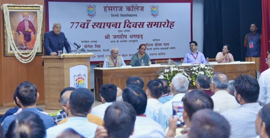 उपराष्ट्रपति ने युवाओं को शासन में सबसे महत्वपूर्ण हितधारक बताते हुए युवा पीढ़ी से उपलब्ध डिजिटल प्लेटफॉर्म और सोशल मीडिया टूल के माध्यम से अपनी आवाज़ बुलंद करने को कहा। उन्होंने कहाकि युवाओं को ज्वलंत मुद्दों पर अपनी जागरुकता बढ़ानी चाहिए और समुदायों को एक साझा दृष्टिकोण की ओर प्रेरित करना चाहिए। यथास्थिति को चुनौती देने और सामाजिक परिवर्तनों को गति देने की युवाओं की क्षमता को रेखांकित करते हुए जगदीप धनखड़ ने युवाओं से सकारात्मक राष्ट्रवादी भूमिका निभाने और भारत के विकास मूल्यों केसाथ प्रतिध्वनित होने वाले कारणों का समर्थन करने का आह्वान किया। उन्होंने कहाकि युवाओं को नवाचार की संस्कृति को प्रोत्साहित करना चाहिए, जो उनकी अंतर्निहित उद्यमशीलता की भावना को दर्शाते हैं। उपराष्ट्रपति ने एक पुनर्निर्मित प्रशासनिक ब्लॉक का उद्घाटन किया और एक ‘स्मारिका’ का अनावरण किया। इस अवसर पर दिल्ली विश्वविद्यालय के कुलपति प्रोफेसर योगेश सिंह, दिल्ली विश्वविद्यालय के हंसराज कॉलेज की प्राचार्य प्रोफेसर रमा, डीएवी कॉलेज प्रबंध समिति नई दिल्ली के उपाध्यक्ष न्यायमूर्ति प्रीतम पाल सिंह, छात्र, संकाय सदस्य और गणमान्य व्यक्ति उपस्थित थे।