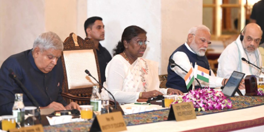 नई दिल्ली। राष्ट्रपति द्रौपदी मुर्मु ने आज राष्ट्रपति भवन में राज्यपालों के सम्मेलन का उद्घाटन किया। दो दिनी सम्मेलन में ऐसे कई विषयों पर चर्चा की जाएगी, जो न केवल केंद्र और राज्यों के संबंधों को आकार देने में महत्वपूर्ण भूमिका निभाते हैं, बल्कि जनसाधारण केलिए कल्याणकारी योजनाओं को बढ़ावा देने में भी महत्वपूर्ण हैं। राष्ट्रपति ने उद्घाटन भाषण में कहाकि सम्मेलन की कार्यसूची में सम्मिलित विषय हमारे राष्ट्रीय लक्ष्यों की प्राप्ति केलिए अत्यंत महत्वपूर्ण हैं। राष्ट्रपति ने कहाकि लोकतंत्र के सुचारू संचालन केलिए जरूरी हैकि विभिन्न केंद्रीय एजेंसियां सभी राज्यों में बेहतर समन्वय केसाथ काम करें। उन्होंने राज्यपालों को सलाह दीकि वे इस बारेमें सोचेंकि वे संबंधित राज्यों के संवैधानिक प्रमुख के रूपमें इस समन्वय को कैसे बढ़ावा दे सकते हैं। उन्होंने कहाकि सम्मेलन में होनेवाले विचार-विमर्श सभी केलिए एक समृद्ध अनुभव होंगे और उनके कामकाज में सहायक होंगे।