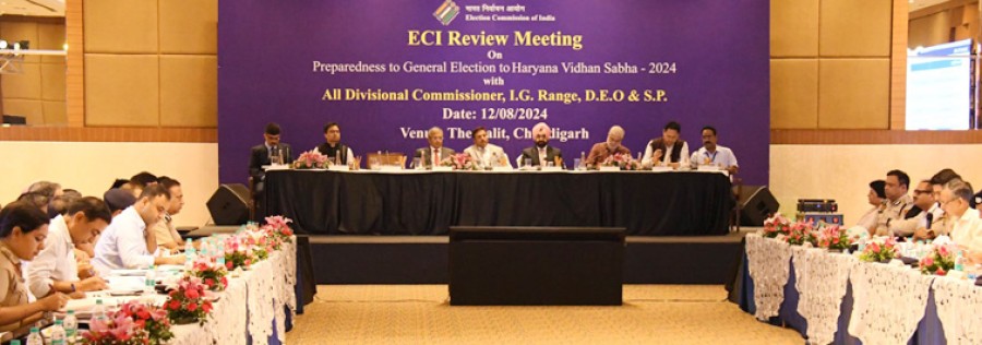 चुनाव आयोग ने जिला निर्वाचन अधिकारियों, पुलिस अधीक्षकों, मंडल आयुक्तों, महानिरीक्षकों केसाथ चुनाव नियोजन एवं संचालन के प्रत्येक पहलू पर विस्तृत समीक्षा की, जिसमें मतदाता सूची, ईवीएम प्रबंधन, रसद, मतदान केंद्रों की व्यवस्था एवं बुनियादी ढांचा, चुनाव कर्मचारियों का प्रशिक्षण, जब्ती, कानून व्यवस्था, मतदाता जागरुकता एवं आउटरीच गतिविधियां शामिल हैं। चुनाव आयोग ने मुख्य निर्वाचन अधिकारी एवं राज्य पुलिस नोडल अधिकारी केसाथ प्रशासनिक, रसद, कानून व्यवस्था व चुनाव संबंधी व्यवस्थाओं पर भी चर्चा की। जिला निर्वाचन अधिकारियों एवं पुलिस अधीक्षकों केसाथ विस्तृत समीक्षा से पूर्व हरियाणा के मुख्य निर्वाचन अधिकारी ने 1 जुलाई 2024 की तिथि से राज्य में मतदाता सूची के चल रहे द्वितीय विशेष सारांश संशोधन सहित चुनाव प्रबंधन केसभी पहलुओं पर विस्तृत विवरण दिया। अंतिम मतदाता सूची 27 अगस्त 2024 को प्रकाशित की जाएगी, जिसकी एक प्रति मान्यता प्राप्त दलों को निःशुल्क प्रदान की जाएगी। चुनाव आयोग ने समग्र चुनाव तैयारियों एवं कानून व्यवस्था के मामलों की समीक्षा केलिए मुख्य सचिव एवं पुलिस महानिदेशक केसाथ भी बैठक की।