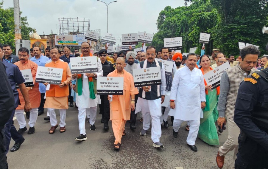 योगी आदित्यनाथ ने कहाकि 14 अगस्त 1947 को जब विभाजन की त्रासदी चल रही थी, उस समय 10 लाख हिंदू-सिख एकसाथ काटे गए थे। उन्होंने कहाकि भारत हजारों-हजार वर्ष से सनातन राष्ट्र रहा है, लेकिन सत्तालोलुप कांग्रेस ने भारत पर विभाजन की त्रासदी थोप दी। उन्होंने कहाकि दुनिया को विश्वास हैकि 'भारत' अगर सुरक्षित है तो 'विश्व मानवता' सुरक्षित है। योगी आदित्यनाथ ने 'एक्स' पर भी पोस्ट किया। उन्होंने अपनी पोस्ट में कहाकि विश्व को 'वसुधैव कुटुंबकम' के आत्मीय भाव से परिचित कराने वाली भारत माँ है। मुख्यमंत्री योगी आदित्यनाथ के नेतृत्व में लखनऊ में भारत विभाजन विभीषिका की स्मृति में यह मौन पदयात्रा थी, जो सरदार वल्लभभाई पटेल के प्रतिमा स्थल से शुरू हुई और लोकभवन पर समाप्त हुई। मुख्यमंत्री योगी आदित्यनाथ ने सरदार वल्लभभाई पटेल की प्रतिमा पर पुष्प अर्पित किए। इस अवसर पर उपमुख्यमंत्री केशव प्रसाद मौर्य और ब्रजेश पाठक, महापौर सुषमा खर्कवाल, राज्यसभा सांसद डॉ दिनेश शर्मा, राज्य के मंत्री, भाजपा कार्यकर्ता, जनप्रतिनिधि और गणमान्य नागरिक हाथ में तख्तियां थामे चल रहे थे, जिनपर बंटवारे की त्रासदी की पीड़ा बयां थीं। योगी आदित्यनाथ ने लोकभवन में विभाजन की विभीषिका पर अभिलेख प्रदर्शनी का भी अवलोकन किया।