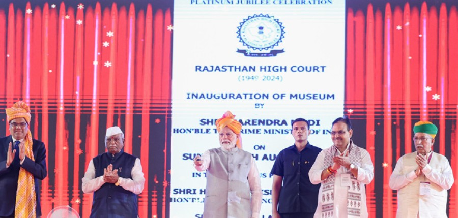 जोधपुर। प्रधानमंत्री नरेंद्र मोदी ने कहा हैकि राष्ट्रीय एकता भारत की न्यायिक प्रणाली की आधारशिला है और इसे मजबूत करने से राष्ट्र एवं इसकी व्यवस्थाएं और ज्यादा मजबूत होंगी। प्रधानमंत्री नरेंद्र मोदी राजस्थान उच्च न्यायालय के प्लेटिनम जुबली समारोह को संबोधित कर रहे थे। उन्होंने कहाकि राजस्थान उच्च न्यायालय ऐसे समय में 75 वर्ष पूरे कर रहा है, जब भारतीय संविधान भी अपने 75 वर्ष पूरे करने वाला है, यह आयोजन कई महान हस्तियों के न्याय, निष्ठा और समर्पण का जश्न मनाने का अवसर है, यह संविधान केप्रति भारत की आस्था का एक उल्लेखनीय उदाहरण है। प्रधानमंत्री ने कहाकि राजस्थान उच्च न्यायालय का अस्तित्व भारत की एकता के इतिहास से जुड़ा है। सरदार वल्लभभाई पटेल के 500 से अधिक राज्यों को एकसाथ लाने और उन्हें एकता के सूत्रमें पिरोकर अखंड भारत के निर्माण के प्रयासों को याद करते हुए नरेंद्र मोदी ने उल्लेख कियाकि राजस्थान की जयपुर, उदयपुर और कोटा जैसी विभिन्न रियासतों के अपने-अपने उच्च न्यायालय हुआ करते थे, जिन्हें एकीकृत करके राजस्थान उच्च न्यायालय अस्तित्व में लाया गया।