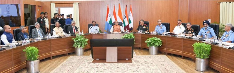 रक्षामंत्री राजनाथ सिंह ने देश की उत्तरी सीमा पर स्थिति और पड़ोसी देशों में होनेवाली घटनाएं, जो क्षेत्रमें शांति एवं स्थिरता केलिए चुनौती पेशकर रही हैं के मद्देनज़र शीर्ष सैन्य नेतृत्व के व्यापक और गहन विश्लेषण की आवश्यकता पर जोर दिया। राजनाथ सिंह ने कहाकि वैश्विक अस्थिरता के बावजूद भारत अपेक्षाकृत शांत माहौल में शांतिपूर्ण तरीके से विकास कर रहा है, हालांकि बढ़ती चुनौतियों के कारण हमें सतर्क रहने की जरूरत है। उन्होंने कहाकि यह महत्वपूर्ण हैकि हम अमृतकाल के दौरान अपनी शांति को बरकरार रखें, हमें अपने वर्तमान पर ध्यान केंद्रित करने की जरूरत है, वर्तमान में हमारे आसपास होरही गतिविधियों पर कड़ी निगरानी की जरूरत है और भविष्योन्मुखी होने पर ध्यान केंद्रित करना चाहिए। रक्षामंत्री ने कहाकि इसके लिए हमारे पास एक मजबूत और सुदृढ़ राष्ट्रीय सुरक्षा का घटक होना चाहिए, हमारे पास अचूक प्रतिरोधक क्षमता होनी चाहिए। रक्षामंत्री ने कमांडरों से सशस्त्र बलों के शस्त्रागार में पारंपरिक और आधुनिक युद्ध उपकरणों के सही मिश्रण की पहचान करने और उन्हें शामिल करने का आह्वान किया।