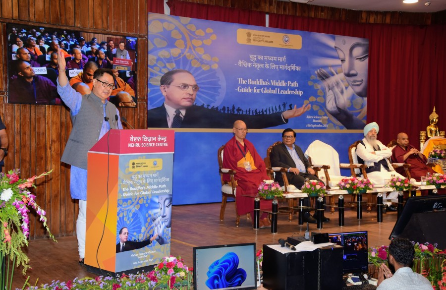 मुंबई। केंद्रीय अल्पसंख्यक कार्य और संसदीय कार्य मंत्री किरेन रिजिजू ने मुंबई के नेहरू विज्ञान केंद्र में 'बुद्धाज मिडिल पाथ-गाइड फॉर ग्लोबल लीडरशिप' विषय पर एक दिवसीय सम्मेलन में कहा हैकि बड़ी बौद्ध आबादी केसाथ महाराष्ट्र एक ऐसा महत्वपूर्ण क्षेत्र है, जहां तथागत भगवान गौतम बुद्ध के सिद्धांतों के प्रसार केलिए कोईभी आंदोलन राष्ट्रव्यापी स्तरपर असर डाल सकता है। किरेन रिजिजू ने कहाकि महाराष्ट्र में बौद्ध धर्म को मजबूती पूरे देशमें सकारात्मक रूपसे प्रतिबिंबित हो सकता है। उन्होंने प्रधानमंत्री नरेंद्र मोदी की हालकी पहलों का उल्लेख किया, जिसमें बुद्ध पूर्णिमा का व्यापक उत्सव शामिल है, जो बौद्ध मूल्यों को बढ़ावा देने की सरकार की प्रतिबद्धता को रेखांकित करता है। उन्होंने कहाकि संयुक्तराष्ट्र और यूरोपीय संघ में प्रधानमंत्री के भाषण भगवान बुद्ध के मूल्यों विशेष रूपसे करुणा और सेवा को लगातार रेखांकित करते हैं और उनकी वैश्विक प्रासंगिकता को दर्शाते हैं। यह केंद्रीय अल्पसंख्यक कार्य मंत्रालय और अंतर्राष्ट्रीय बौद्ध संघ का संयुक्त आयोजन था।