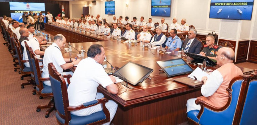 रक्षामंत्री राजनाथ सिंह ने कमांडरों का नौसेना में 'आत्मनिर्भरता' हासिल करने के संकल्प को और मजबूत करने के तरीके तलाशने का आह्वान किया। राजनाथ सिंह ने विश्वास जतायाकि नौसेना को 'खरीदार' से 'निर्माता' में बदलने का दृष्टिकोण 2047 तक इसे पूरी तरहसे आत्मनिर्भर बनाने में सहायक साबित होगा। रक्षामंत्री ने संयुक्त प्रयासों और संसाधनों के इष्टतम उपयोग के महत्व पर भी चर्चा की। उन्होंने कहाकि भारतीय नौसेना और भारतीय तटरक्षक बल की अपनी सामर्थ्य, अधिकार व काम करने के तौर-तरीके हैं, लेकिन देश की समुद्री सुरक्षा को सशक्त करने केलिए और अधिक समन्वय की आवश्यकता है। राजनाथ सिंह ने कार्यक्रम के हिस्से के रूपमें एक टेक डेमो में भी भाग लिया। इस दौरान नौसेना के प्रमुख अनुसंधान एवं विकास संगठन हथियार और इलेक्ट्रॉनिक्स सिस्टम इंजीनियरिंग प्रतिष्ठान सहित विभिन्न एजेंसियों ने स्वदेशी प्रणालियों का प्रदर्शन किया गया, जिसमें स्वायत्त प्रणाली, डोमेन जागरूकता, सॉफ्टवेयर डिफाइंड रेडियो तथा अन्य विशिष्ट तकनीकी पहल शामिल हैं। इस अवसर पर चीफ ऑफ डिफेंस स्टाफ जनरल अनिल चौहान, नौसेना स्टाफ के प्रमुख एडमिरल दिनेश के त्रिपाठी, रक्षा सचिव गिरिधर अरमाने और वरिष्ठ सैन्य एवं असैन्य अधिकारी भी उपस्थित थे।