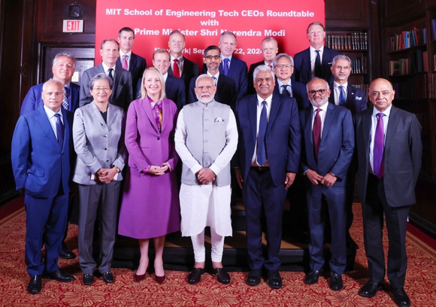न्यूयॉर्क। प्रधानमंत्री नरेंद्र मोदी ने न्यूयॉर्क में मैसाचुसेट्स इंस्टीट्यूट ऑफ टेक्नोलॉजी यानी एमआईटी स्कूल ऑफ इंजीनियरिंग के आयोजित प्रौद्योगिकी गोलमेज सम्मेलन में प्रौद्योगिकी उद्योगजगत के अग्रणी प्रतिनिधियों केसाथ बातचीत की। प्रौद्योगिकी गोलमेज सम्मेलन में आर्टिफिशियल इंटेलिजेंस और क्वांटम, जैव प्रौद्योगिकी और जीवन विज्ञान, कंप्यूटिंग, आईटी और संचार एवं सेमीकंडक्टर प्रौद्योगिकियों पर ध्यान केंद्रित किया गया। सीईओ समूह ने प्रधानमंत्री केसाथ वैश्विक स्तरपर विकसित होरहे प्रौद्योगिकी परिदृश्य और कैसे ये अत्याधुनिक प्रौद्योगिकियां, भारत सहित दुनियाभर के लोगों की भलाई में योगदान दे रही हैं, इसपर गहन विचार विमर्श किया। सीईओ समूह ने इस बात का भी उल्लेख कियाकि कैसे प्रौद्योगिकी का उपयोग नवाचारों केलिए किया जारहा है, जिसमें वैश्विक अर्थव्यवस्था और मानव विकास में क्रांति लाने की क्षमता है।