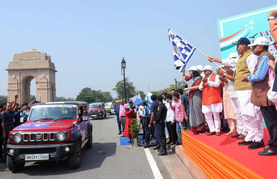 नई दिल्ली। रक्षामंत्री राजनाथ सिंह ने भारतीय वायुसेना की 92वीं वर्षगांठ के सिलसिले में आज राष्ट्रीय युद्ध स्मारक नई दिल्ली से 'वायु वीर विजेता' कार रैली को लद्दाख के थोइस केलिए रवाना किया। इनमें वायुवीर महिलाएं भी शामिल हैं। रक्षामंत्री ने इस अवसर पर कहाकि राष्ट्रीय युद्ध स्मारक से 7000 किलोमीटर लंबी वायु वीर विजेता कार रैली को रवाना करने पर मुझे बहुत खुशी है, 50 से अधिक वायुयोद्धा 8 से 29 अक्टूबर तक थोइस (लद्दाख) से तवांग (अरुणाचल प्रदेश) तक नौ राज्यों एवं केंद्रशासित प्रदेशों का भ्रमण करेंगे, जिसका उद्देश्य युवाओं को सशस्त्र बलों में शामिल होने और राष्ट्र की सेवा करने केलिए प्रेरित करना है। उन्होंने रैली में भाग लेनेवाले वायुवीरों को शुभकामनाएं दीं। रैली के विभिन्न चरणों में पूर्व वायुसेना प्रमुख भी भाग लेंगे।