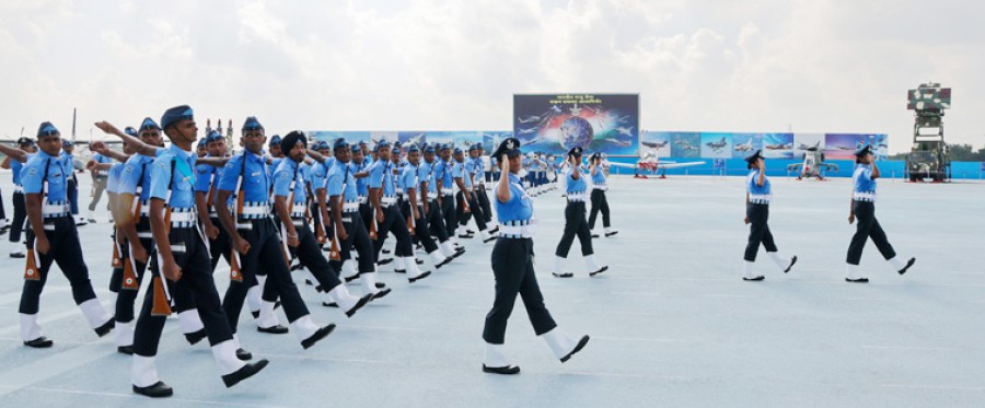 भारतीय वायुसेना की वर्षगांठ परेड की शुरुआत राष्ट्रपति ध्वज की मार्चिंग केसाथ हुई, जो गर्व, एकता, शक्ति और दल भावना का प्रतीक है। इस दौरान तीनों सेनाओं के बैंड के प्रदर्शन से देशभक्ति के जोश से भरपूर औरभी मधुर माहौल बन गया। एयर वॉरियर ड्रिल टीम ने अपनी धारदार और समन्वित कलाबाजी से दर्शकों को मंत्रमुग्ध किया। परेड केबाद शानदार एयर शो हुआ, जिसमें तेजस लाइट कॉम्बैट एयरक्राफ्ट, सुखोई-30 एमकेआई और पिलाटस सहित विभिन्न जेट विमानों ने कम ऊंचाई पर साहसिक हवाई करतब दिखाए। इस दौरान चेन्नई का आसमान राष्ट्रीय ध्वज के रंगों में रंगा हुआ था, सूर्यकिरण एरोबेटिक्स टीम और सारंग हेलीकॉप्टर टीम ने रोमांचकारी प्रदर्शन दिखाया। स्थैतिक प्रदर्शन में एएलएच एमके-4, सी-295 परिवहन विमान, आकाश मिसाइल रक्षा प्रणाली, एचटीटी-40 और रोहिणी रडार जैसे अत्याधुनिक साजोसामान प्रदर्शित किए गए। यह दिवस भारतीय वायुसेना के लगभग एकसौ वर्ष के दृढ़ समर्पण और राष्ट्र केप्रति उसकी अद्वितीय सेवा केलिए उपयुक्त सम्मान का प्रतिदान है, जिसमें 'भारतीय वायुसेना: सक्षम, सशक्त, आत्मनिर्भर' की थीम को मूर्तरूप दिया गया।