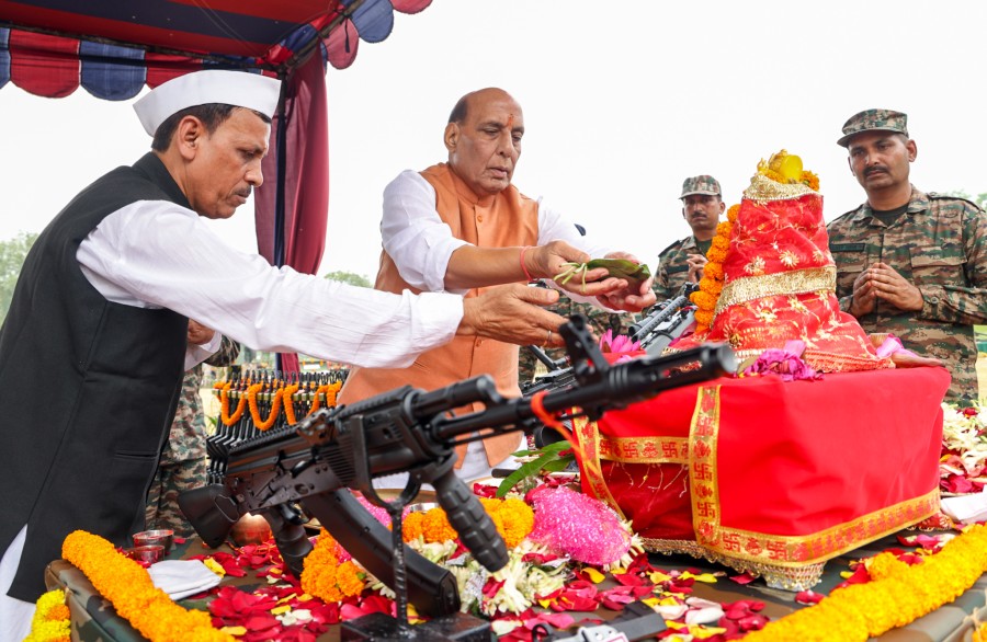 दार्जिलिंग (पश्चिम बंगाल)। रक्षामंत्री राजनाथ सिंह ने आज दशहरे के पावन पर्व पर पश्चिम बंगाल के सुकना सैन्य स्टेशन पर सैनिकों के साथ पारंपरिक शस्त्र पूजा की। उन्होंने कहाकि दशहरा बुराई पर अच्छाई की जीत का प्रतीक है और शस्त्र पूजा एक स्पष्ट संकेत हैकि अगर आवश्यकता हुई तो रक्षा हथियारों और उपकरणों का पूरी ताकत से उपयोग किया जाएगा। रक्षामंत्री ने कहाकि भारतीय सेना में यह महत्वपूर्ण आयोजन राष्ट्र की संप्रभुता के रक्षक के रूपमें हथियारों केप्रति सम्मान का प्रतीक है। उन्होंने कहाकि शक्ति, सफलता और सुरक्षा केलिए आशीर्वाद मांगने केलिए किए जानेवाले अनुष्ठान दशहरा की सांस्कृतिक और आध्यात्मिक महत्ता को दर्शाता है और ये देश की सुरक्षा में हथियार प्रणालियों की महत्वपूर्ण भूमिका को रेखांकित करते हैं।