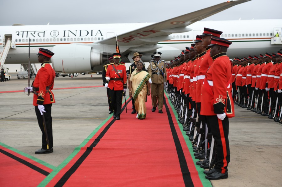 लिलोंग्वे (मलावी)। राष्ट्रपति द्रौपदी मुर्मु तीन अफ्रीकी देशों-अल्जीरिया, मॉरिटानिया और मलावी की अपनी राजकीय यात्रा के अंतिम चरण में लिलोंग्वे मलावी पहुंच चुकी हैं। कामुजू अंतर्राष्ट्रीय हवाई अड्डे पहुंचने पर मलावी के उपराष्ट्रपति माइकल उसी ने राष्ट्रपति की अगवानी की और गणमान्य नागरिकों और बच्चों के साथ उनका गर्मजोशी से स्वागत किया। हवाई अड्डे पर राष्ट्रपति को गार्ड ऑफ ऑनर दिया गया और उनके समक्ष पारंपरिक सांस्कृतिक कार्यक्रम भी प्रस्तुत किए गए। गौरतलब हैकि भारत की ओर से राष्ट्रपति द्रौपदी मुर्मु की यह मलावी की पहली राजकीय यात्रा है। राष्ट्रपति केसाथ राज्यमंत्री सुकांत मजूमदार और सांसद मुकेशकुमार दलाल एवं अतुल गर्ग भी हैं।
