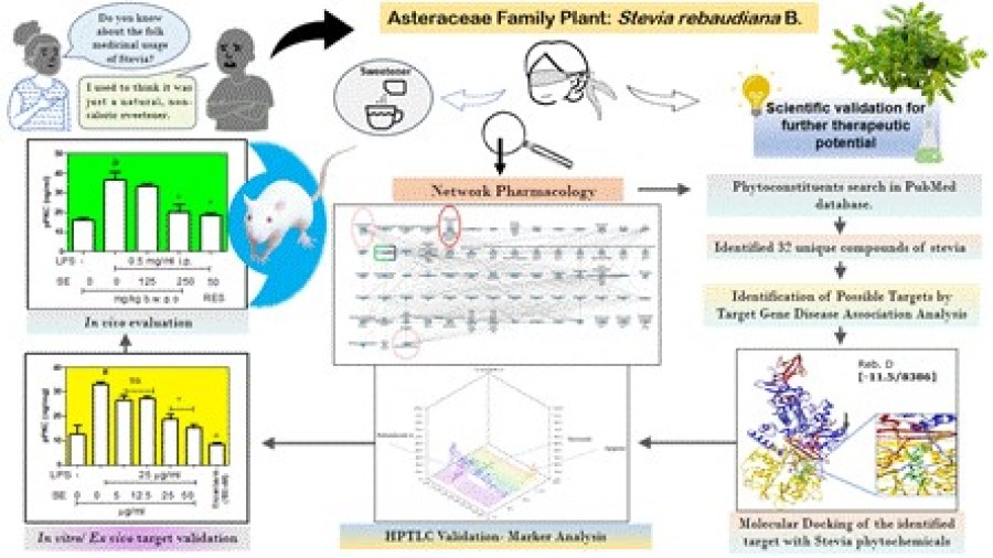 गुवाहाटी में विज्ञान और प्रौद्योगिकी विभाग के एक स्वायत्त संस्थान, विज्ञान और प्रौद्योगिकी उन्नत अध्ययन संस्थान (आईएएसएसटी) के शोधकर्ताओं की एक टीम डॉ असिस बाला एसोसिएट प्रोफेसर, प्रोफेसर आशीष के मुखर्जी निदेशक और पियाली देवरॉय शोध छात्रा ने असम के स्टीविया के चिकित्सीय गुणों को साबित करने केलिए इसके औषधीय गुणों, सेलुलर सिग्नलिंग तंत्र पर प्रभावों का अग्रणी शोध किया है। शोधकर्ताओं ने इन विट्रो और इन विवो तकनीकों केसाथ नेटवर्क फार्माकोलॉजी को एकीकृत कर दिखाया कि पौधे ने एक महत्वपूर्ण सेलुलर सिग्नलिंग मार्ग को बाधित करने केलिए प्रोटीन किनेज सी (पीकेसी) के फॉस्फोराइलेशन का उपयोग किया। पीकेसी सूजन, ऑटोइम्यून, एंडोक्राइन और कार्डियोवैस्कुलर बीमारियों से जुड़ा हुआ है। स्टीविया पीकेसी फॉस्फोराइलेशन को कम करता है, जो सूजन पैदा करने वाली प्रक्रिया को बदल देता है। यह अंतःस्रावी चयापचय और कार्डियोवैस्कुलर समस्याओं का एक महत्वपूर्ण कारण है।