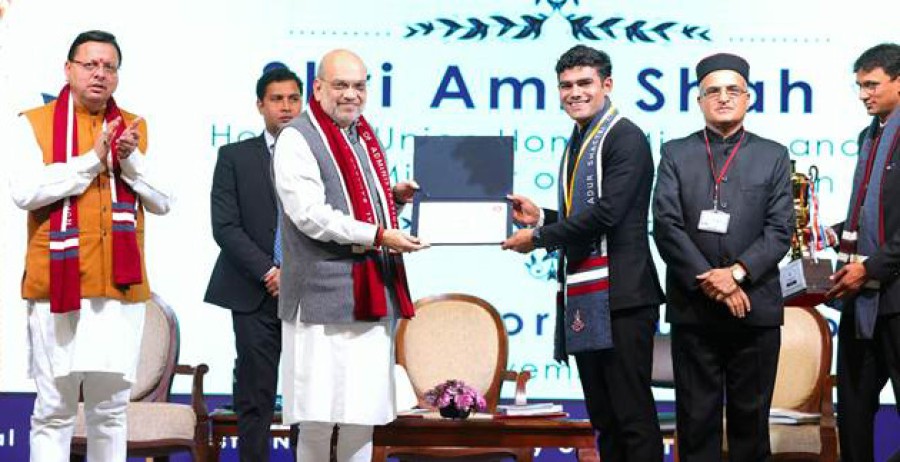 गृहमंत्री अमित शाह ने कहाकि नई शिक्षा नीति भारत के युवाओं को दुनियाभर के युवाओं केसाथ प्रतिस्पर्धा करने का मंच प्रदान कर रही है और प्राथमिक शिक्षा को मातृभाषा में सुनिश्चित करने से बच्चों के समझने और तर्क करने की क्षमता बढ़ रही है। गृहमंत्री ने कहाकि जम्मू कश्मीर में आतंकवाद, वामपंथी उग्रवाद, पूर्वोत्तर में उग्रवाद और नारकोटिक्स देश के 4 नासूर थे, सरकार की सख्त नीतियों के कारण 10 वर्ष में हमें इन चारों क्षेत्रोंमें बड़ी सफलताएं हासिल हुई हैं। उन्होंने दावा कियाकि 31 मार्च 2026 तक नक्सलवाद को पूरी तरह समाप्त कर दिया जाएगा। अमित शाह ने कहाकि जबतक हम स्वतंत्र भारत के स्वतंत्र नागरिक होने का आत्मविश्वास और हमारे इतिहास तथा परंपरा के गौरव की भावना को महसूस नहीं करते, तबतक हम भारत को महान नहीं बना सकते हैं। उन्होंने कहाकि सभीको अपने खानपान, वेशभूषा और संस्कृति का गर्व केसाथ अनुसरण करना चाहिए। अमित शाह ने अधिकारियों से कहाकि चिंता की जगह चिंतन और व्यथा की जगह व्यवस्था से किसीभी समस्या का समाधान निकालें, चिंता हमारी सोचने की क्षमता को कम करती है, इसीलिए योग और ध्यान को जीवन का नित्यक्रम बनाएं। गृहमंत्री ने कहाकि समस्या के समाधान केलिए रोडमैप बनाना, माइक्रो प्लानिंग करना, उसे लागू करना, मिडटर्म समीक्षा करना और निरंतर फ़ॉलोअप करना बेहद ज़रूरी है। दीक्षांत समारोह में उत्तराखंड के मुख्यमंत्री पुष्कर सिंह धामी और गणमान्य नागरिक भी उपस्थित थे।