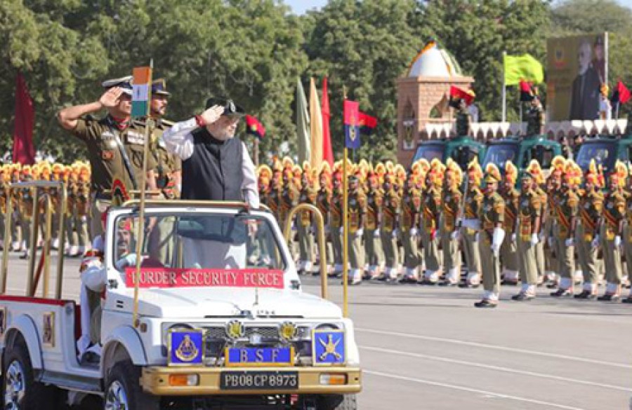 जोधपुर। केंद्रीय गृहमंत्री अमित शाह ने सीमा सुरक्षा बल के 60वें स्थापना दिवस पर आज जोधपुर में भव्य परेड समारोह में कहा हैकि बीएसएफ जवानों का योगदान स्वर्णिम अक्षरों से लिखा जाएगा। उन्होंने कहाकि छह दशक से साहस, शौर्य, त्याग और बलिदान से बीएसएफ ने ‘देश की फर्स्ट लाइन ऑफ डिफेंस’ को मज़बूत करने का अनुकरणीय कार्य किया और कर रही है, बीएसएफ ने सीमा पर आनेवाली सभी चुनौतियों का मुकाबला करके देश की सुरक्षा की प्रथम पंक्ति को सशक्त किया है। अमित शाह ने कहाकि 8 दिसंबर 1965 से लेकर आजतक निरंतर देश की पूर्वी और पश्चिमी सीमा को सुरक्षित रखने का बीएसएफ का रिकॉर्ड शानदार है। गृहमंत्री ने कहाकि बीएसएफ के 1992 जवानों ने देश की सुरक्षा केलिए अपने प्राणों का बलिदान दिया है, जिसके लिए देश की जनता सदैव उनकी ऋणी रहेगी। गृहमंत्री ने कहाकि प्रधानमंत्री नरेंद्र मोदी सरकार में भारत के सुरक्षा परिदृश्य में बहुत बड़ा और सकारात्मक परिवर्तन आया है। गृहमंत्री ने इस मौके पर बीएसएफ जवानों और अधिकारियों का उत्साहवर्धन करते हुए उनको पदक, पुरस्कार और ट्रॉफी देकर सम्मानित भी किया।