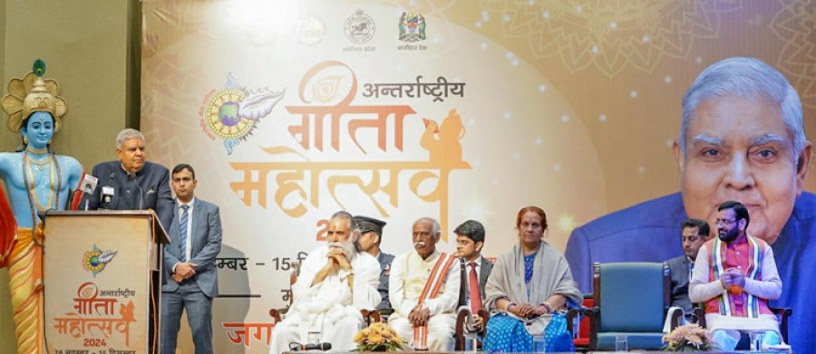 उपराष्ट्रपति ने कहाकि भगवान श्रीकृष्ण सिखाते हैं-यज्ञार्थ कर्मणो यानी काम व्यक्तिगत लाभ केलिए नहीं, बल्कि व्यापक भलाई केलिए होना चाहिए। उन्होंने इसी भावना केसाथ अपील कि 2047 तक विकसित भारत का निर्माण एक महान यज्ञ है, राष्ट्र के कल्याण केलिए सबको अपनी क्षमता के अनुसार इस सामूहिक प्रयास में योगदान देना चाहिए। उपराष्ट्रपति ने कहाकि करुणा हमारी 5000 साल पुरानी संस्कृति का सार है, कोविड-19 संकट में भारत ने स्वयं इसका सामना करते हुए भी 100 से अधिक देशों को टीके उपलब्ध कराकर अपनी करुणामयी भावना का प्रदर्शन किया। उपराष्ट्रपति ने जिक्र कियाकि चाहे समुद्र में फंसे जहाजों को बचाना हो, युद्ध केबीच छात्रों को निकालना हो या भूकंप और अकाल जैसी प्राकृतिक आपदाओं में सहायता प्रदान करना हो, भारत हमेशा सबसे पहले प्रतिक्रिया देने वाला राष्ट्र है और इस करुणा को हर किसीके जीवन में जगह मिलनी चाहिए। जगदीप धनखड़ ने यहभी उल्लेख कियाकि देशके भीतर और बाहर कुछ ताकतें व्यवस्थित रूपसे भारत की अर्थव्यवस्था और संस्थानों को कमजोर करने का प्रयास कर रही हैं, उनका इरादा हमारी संवैधानिक संस्थाओं को कमजोर करना और हमारी प्रगति के मार्ग को बाधित करना है, ऐसी ताकतों को नज़रअंदाज नहीं किया जा सकता। गीता महोत्सव में हरियाणा के राज्यपाल बंडारू दत्तात्रेय, हरियाणा के मुख्यमंत्री नायब सिंह सैनी, स्वामी ज्ञानानंद महाराज और गणमान्य नागरिक उपस्थित थे।