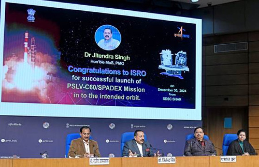 नई दिल्ली। प्रधानमंत्री कार्यालय, पूर्वोत्तर क्षेत्र विकास, कार्मिक एवं पेंशन तथा परमाणु ऊर्जा और अंतरिक्ष विभाग में राज्यमंत्री डॉ जितेंद्र सिंह ने कहा हैकि इसरो के अंतरिक्ष डॉकिंग प्रयोग (स्पेडेक्स) ने भारत को अंतरिक्ष डॉकिंग प्रौद्योगिकी में वैश्विक रूपसे अग्रणी देशों में शामिल कर दिया है, जो देश केलिए एक अभूतपूर्व उपलब्धि है। राज्यमंत्री डॉ जितेंद्र सिंह ने श्रीहरिकोटा से पीएसएलवी-सी60 के सफल प्रक्षेपण केबाद नई दिल्ली में मीडिया को जानकारी देते हुए स्पेडेक्स मिशन को मील का पत्थर बताया, जो इसरो की एक महत्वपूर्ण परियोजना है, जिसका उद्देश्य दो छोटे उपग्रहों का उपयोग करके अंतरिक्षयान समागम, डॉकिंग और अनडॉकिंग केलिए प्रौद्योगिकियों का विकास एवं प्रदर्शन करना है। उन्होंने कहाकि ये क्षमताएं भविष्य के मिशनों केलिए महत्वपूर्ण हैं, जिनमें उपग्रह सेवा, अंतरिक्ष स्टेशन संचालन और अंतर ग्रहीय अन्वेषण शामिल हैं।