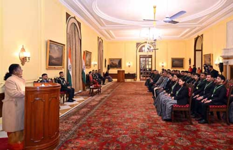 राष्ट्रपति द्रौपदी मुर्मू केसाथ आईएसएस परिवीक्षार्थियों की मुलाकात