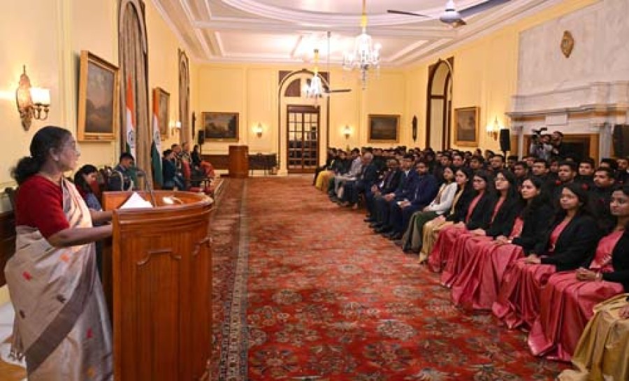 नई दिल्ली। राष्ट्रपति द्रौपदी मुर्मु से भारतीय रक्षा लेखा सेवा और भारतीय दूरसंचार सेवा के परिवीक्षाधीनों के एक समूह ने आज राष्ट्रपति भवन में मुलाकात की। राष्ट्रपति ने परिवीक्षार्थियों को उनके उज्ज्वल भविष्य की शुभकामनाएं देते हुए कहाकि विकसित भारत यात्रा के परिवर्तनकारी क्षणों में वे अपनी उल्लेखनीय सेवाएं दे रहे हैं, उनके विचार, निर्णय और कार्य राष्ट्र के भविष्य की दिशा को महत्वपूर्ण रूपसे प्रभावित करेंगे। राष्ट्रपति ने विश्वास व्यक्त कियाकि वे चुनौतियों का सामना करने में अपने कौशल, विशेषज्ञता और रचनात्मकता का लाभ उठाकर सार्थक प्रभाव डालेंगे। उन्होंने कहाकि उभरती प्रौद्योगिकियों का अभिसरण, तेजीसे सूचना का प्रसार और बदलते वैश्विक परिदृश्य एक जटिल, लेकिन रोमांचक वातावरण प्रस्तुत करते हैं।