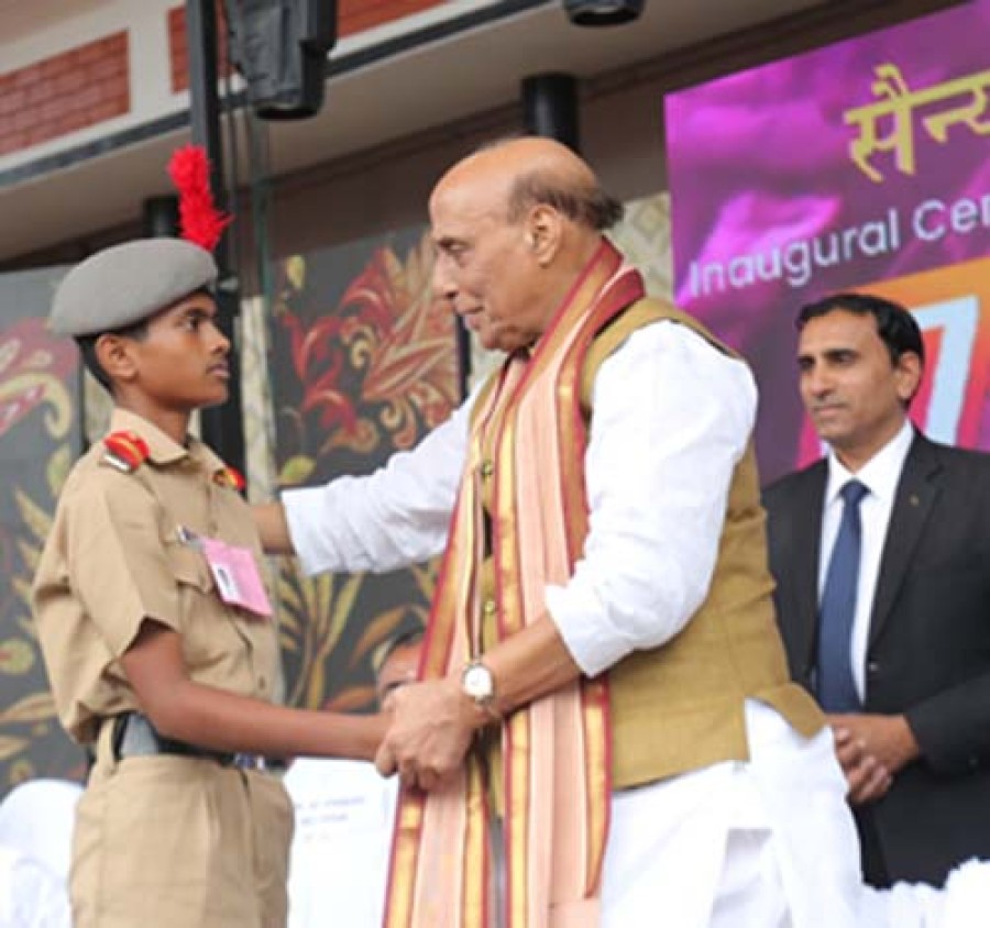 रक्षामंत्री राजनाथ सिंह ने कहाकि इस सैनिक स्कूल का नाम महान समाजसुधारक विद्याधिराज चट्टंबी स्वामी के नामपर रखा गया है, जिनके कार्य एवं सामाजिक सुधार केप्रति उत्साह शिक्षा को आत्मप्राप्ति और मातृभूमि की सेवा केलिए एक उपकरण के रूपमें इस्तेमाल करने की प्रेरणा के रूपमें कार्य करते हैं। रक्षामंत्री ने विद्यार्थियों में आधुनिक शिक्षा केसाथ-साथ सही मूल्यों को विकसित करने की दिशामें स्कूल प्रबंधन के प्रयासों की सराहना की। रक्षामंत्री ने कहाकि सैनिक स्कूल न केवल समाज के सभी वर्गों को गुणवत्तापूर्ण शिक्षा प्रदान करते हैं, बल्कि लड़कियों को भी समान अवसर प्रदान करते हैं। उन्होंने कहाकि हमारी सरकार का मानना हैकि जब सैनिक स्कूल बच्चों के विकास में अहम भूमिका निभा रहे हैं, तो बालिकाओं को पीछे नहीं छोड़ा जा सकता। उन्होंने कहाकि एक तरफ जहां महिलाओं को सशस्त्र बलों में स्थायी कमीशन दिया जा रहा है, वहीं दूसरी ओर सैनिक स्कूल भी बड़ी संख्या में महिलाओं को सेना में शामिल होने केलिए एक मजबूत आधार तैयार कर रहे हैं।