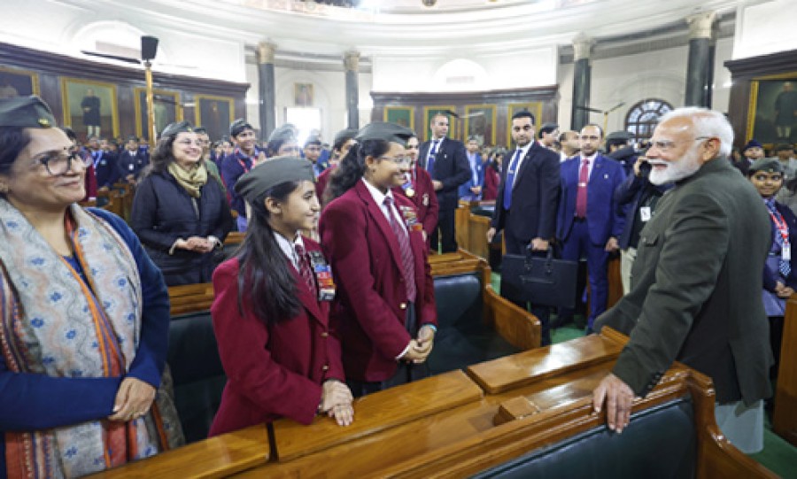 पराक्रम दिवस पर प्रधानमंत्री केसाथ विद्यार्थियों की सदन में बातचीत