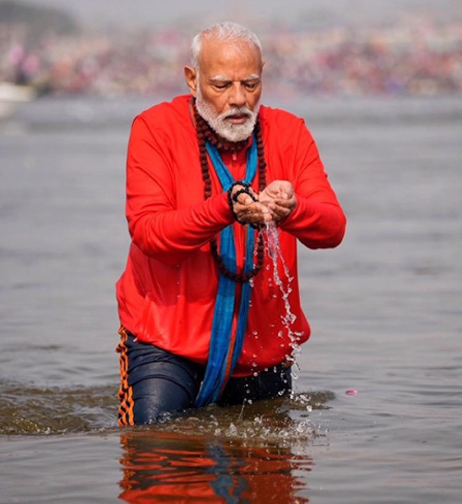 प्रधानमंत्री नरेंद्र मोदी ने एक्स पोस्ट में लिखाकि महाकुंभ में उन्हें पवित्र त्रिवेणी संगम में स्नान केबाद पूजा अर्चना का परम सौभाग्य मिला और माँ गंगा, यमुना और सरस्वती का आशीर्वाद पाकर मन उनको असीम शांति और संतोष मिला है। उन्होंने लिखाकि माँ गंगा, यमुना और सरस्वती से उन्होंने समस्त देशवासियों की सुख-समृद्धि, आरोग्य और कल्याण की कामना की, हर-हर गंगे! प्रधानमंत्री ने लिखाकि प्रयागराज में दिव्य भव्य महाकुंभ में आस्था, भक्ति और अध्यात्म का संगम हर किसीको अभिभूत कर रहा है और पावन पुण्य महाकुंभ में स्नान की सोशल मीडिया प्लेटफॉर्म एक्स पर कुछ तस्वीरें साझा कीं।