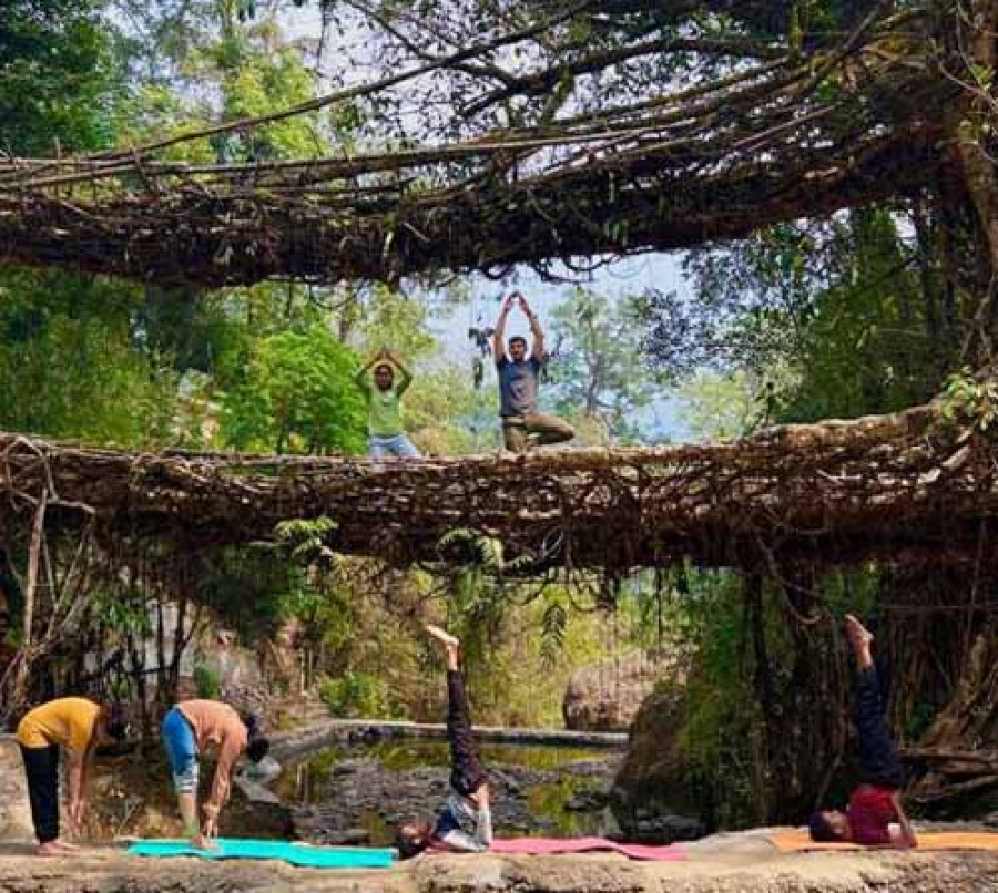 लिविंग रूट ब्रिज पर योगासन इस बातका प्रतीक हैकि कैसे प्राचीन ज्ञान आधुनिक स्वास्थ्य केसाथ सहजता से मिलकर टिकाऊ, सचेत जीवन जीने केलिए प्रेरित कर सकता है। लिविंग रूट ब्रिज यूनेस्को की विश्व धरोहर में शामिल होने की प्रक्रिया में है। यह ब्रिज रबर और अंजीर के पेड़ों की जड़ों से पूरी तरह हवा में बुना हुआ है, जो चामत्कारिक तौरपर एक जीवंत मार्ग बनाता है और समय केसाथ मजबूत होता जाता है। हरे-भरे वर्षावन और झरनों से घिरा पुल यह दिखाने को काफी हैकि योग सिर्फ एक अभ्यास से कहीं ज्यादा प्रकृति केसाथ तालमेल बिठाने वाली ज़िंदगी जीने का तरीका है। गौरतलब हैकि वर्ष 2014 में संयुक्तराष्ट्र की ओर से 21 जून को अंतर्राष्ट्रीय योग दिवस घोषित किए जाने केबाद से भारत ने अपने कुछ सबसे प्रतिष्ठित स्थलों पर योग सत्र आयोजित करके दुनिया के योग अनुभव को फिरसे परिभाषित किया है।