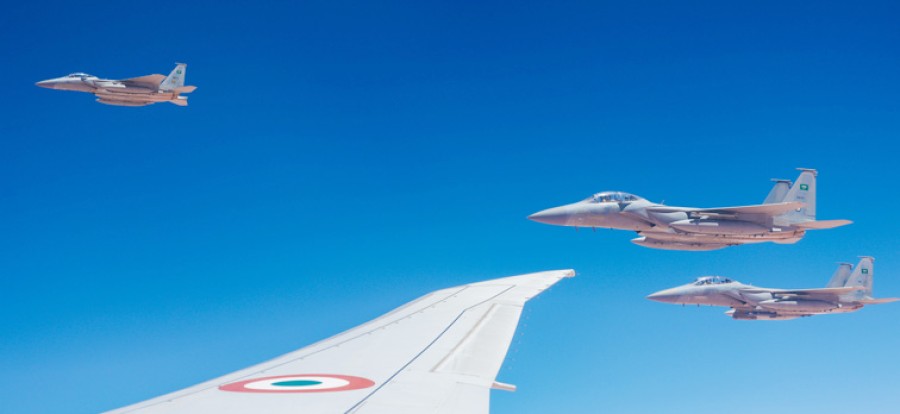 सऊदी अरब के लड़ाकू विमानों ने आकाश में किया ऐतिहासिक स्वागत