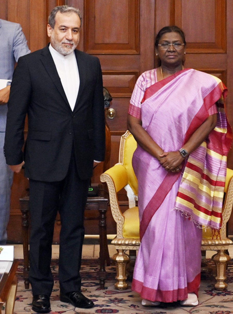 राष्ट्रपति द्रौपदी मुर्मु ने कहाकि भारत और ईरान के द्विपक्षीय संबंध नियमित उच्चस्तरीय आदान-प्रदान के मजबूत आधार पर निर्मित हैं और 75 वर्ष में भारत-ईरान केबीच संबंध विविध क्षेत्रोंमें विकसित हुए हैं, चाहे वह सांस्कृतिक सहयोग हो, व्यापार और ऊर्जा साझेदारी हो या क्षेत्रीय और वैश्विक मंचों पर रणनीतिक समन्वय हो दोनों देशों ने न केवल लंबे समय से मित्रता बनाए रखी है, बल्कि क्षेत्रीय शांति और समृद्धि केलिए भी एकसाथ काम किया है। उन्होंने चाबहार बंदरगाह की पूरी क्षमता को साकार करने में दोनों पक्षों केबीच चल रहे सहयोग का स्वागत किया। राष्ट्रपति भारत और ईरान ने विश्वास जतायाकि ईरान के विदेश मंत्री डॉ अब्बास अराघची का यह भारत दौरा भारत-ईरान द्विपक्षीय संबंधों को और अधिक मजबूत करेगा।