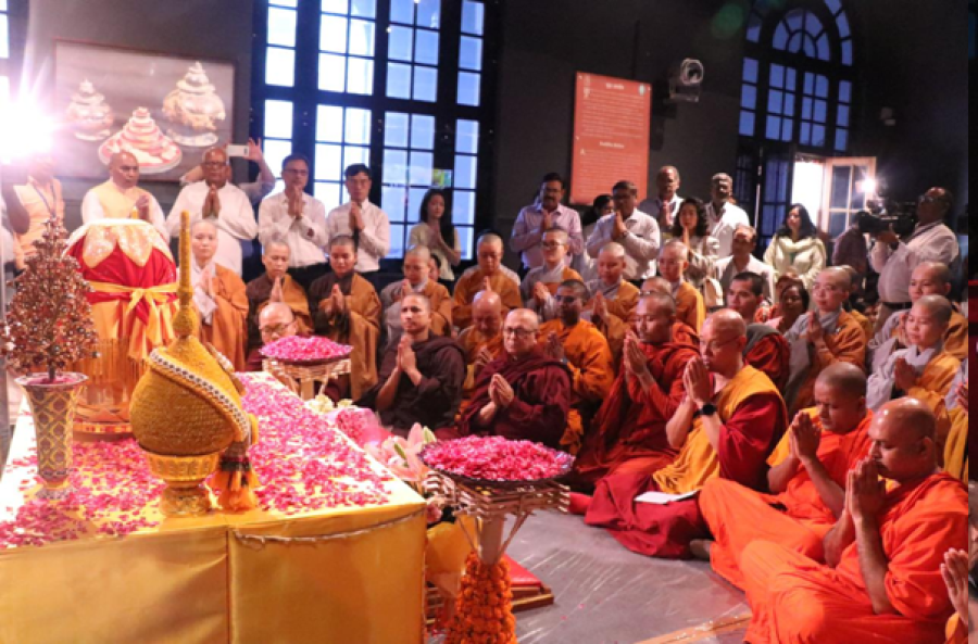 नई दिल्ली। तथागत भगवान गौतम बुद्ध के पवित्र अवशेषों की वियतनाम के 9 शहरों में 30 दिवसीय प्रदर्शनी कार्यक्रम के पश्चात स्वदेश वापसी पर केंद्रीय संस्कृति मंत्रालय के सहयोग से राष्ट्रीय संग्रहालय नई दिल्ली और अंतर्राष्ट्रीय बौद्ध परिसंघ ने राष्ट्रीय संग्रहालय में एक श्रद्धांजलि कार्यक्रम आयोजित किया, जिसमें बड़ी संख्या में बौद्ध अनुयायियों और श्रद्धालुओं ने भगवान बुद्ध को श्रद्धासुमन अर्पित किए। भगवान बुद्ध के पवित्र अवशेषों को कल सारनाथ ले जाकर एकबार फिर मूलगंध कुटी विहार मंदिर में विधिविधान से स्थापित कर दिया जाएगा। श्रद्धांजलि कार्यक्रम में वक्ताओं ने अपने अनुभव साझा करते हुए बतायाकि वियतनाम के निवासियों ने पूर्ण भक्ति, धैर्य और आत्मानुशासन का परिचय देते हुए अवशेष वेदी पर दर्शन केलिए अपनी बारी आने तक पूर्ण तन्मयता केसाथ घंटों प्रतीक्षा की। भगवान बुद्ध की बस एक झलक पाने केलिए कहीं बच्चे अपने बुजुर्ग माता-पिता को कंधों पर उठाकर ले जा रहे थे, तो दिव्यांगजनों को अपने परिजनों का सहारा मिल रहा था।