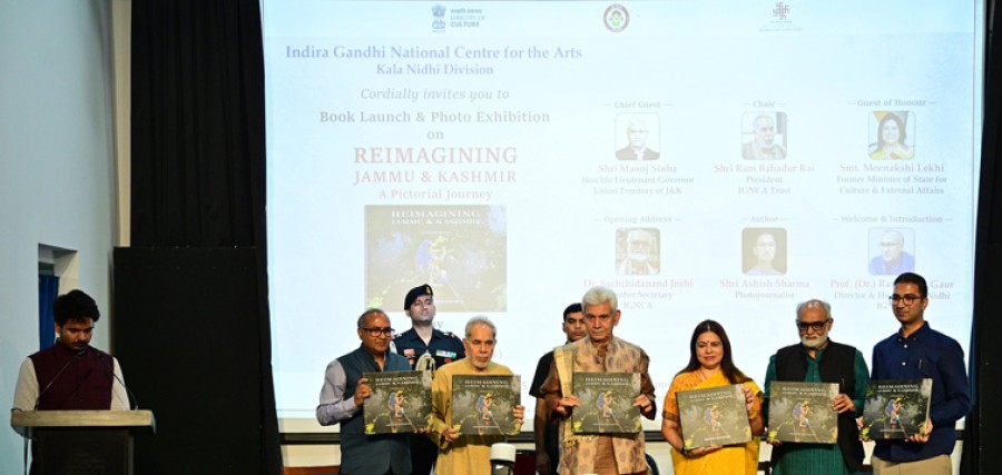 नई दिल्ली। जम्मू और कश्मीर के उपराज्यपाल मनोज सिन्हा ने इंदिरा गांधी राष्ट्रीय कला केंद्र नई दिल्ली में ब्लूम्सबरी द्वारा प्रकाशित फ़ोटो जर्नलिस्ट आशीष शर्मा की पुस्तक ‘रीइमेजिनिंग जम्मू एंड कश्मीर: ए पिक्टोरियल जर्नी’ का विमोचन और फोटो प्रदर्शनी का उद्घाटन किया। इस मौके पर केंद्रीय संस्कृति और विदेश राज्यमंत्री रहीं मीनाक्षी लेखी, इंदिरा गांधी राष्ट्रीय कला केंद्र के अध्यक्ष रामबहादुर राय, आईजीएनसीए के सदस्य सचिव डॉ सच्चिदानंद जोशी और आईजीएनसीए के कला निधि प्रभाग के निदेशक और प्रमुख प्रोफेसर रमेश सी गौर मौजूद थे। प्रदर्शनी 26 जून 2025 तक इंदिरा गांधी राष्ट्रीय कला केंद्र की दर्शनम गैलरी में लगी रहेगी। जम्मू कश्मीर के एलजी मनोज सिन्हा ने कार्यक्रम को संबोधित करते हुए जम्मू कश्मीर क्षेत्रके एकीकरण और परिवर्तन के निर्णायक क्षण के रूपमें दो ऐतिहासिक तिथियों-5 अगस्त 2019 और 6 जून 2025 का उल्लेख किया। पहली तिथि अनुच्छेद 370 के निरस्त होने का प्रतीक है और दूसरी प्रधानमंत्री नरेंद्र मोदी द्वारा कन्याकुमारी से कश्मीर केलिए रेल को रवाना करके दशकों से चले आरहे ठहराव के अंत और संपर्क तथा विकास के एक नए युग की शुरुआत का प्रतीक है।