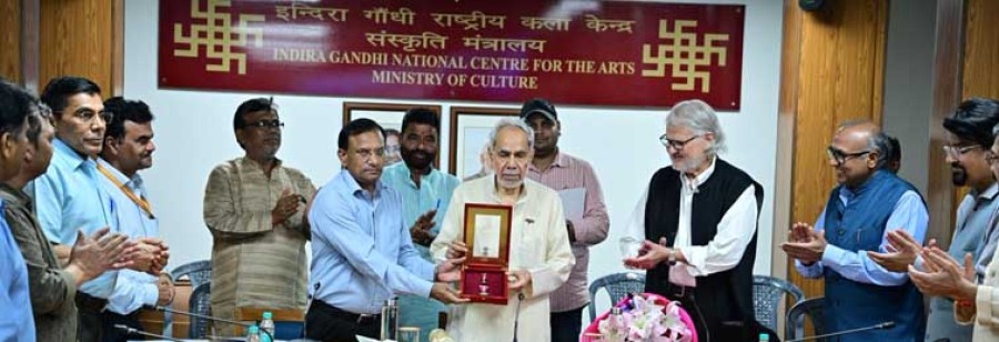 नई दिल्ली। इंदिरा गांधी राष्ट्रीय कला केंद्र (आईजीएनसीए) ट्रस्ट के अध्यक्ष और दिग्गज पत्रकार विश्लेषक रामबहादुर राय को गृह मंत्रालय के महानिदेशक सतपाल चौहान ने 'पद्म भूषण' से सम्मानित किया। आईजीएनसीए के मीडिया प्रभारी अनुराग पुनेठा ने रामबहादुर राय के सम्मान में जारी हुआ आधिकारिक प्रशस्ति-पत्र पढ़ा। रामबहादुर राय राष्ट्रपति भवन में आयोजित नागरिक सम्मान समारोह में शामिल नहीं हो सके थे, इसलिए राष्ट्रपति का हस्ताक्षरित पदक और प्रशस्तिपत्र उन्हें आईजीएनसीए कार्यालय में प्रदान किया गया। सतपाल चौहान ने इस अवसर पर रामबहादुर राय पर अपने उद्गार में कहाकि यह केवल एक सम्मान नहीं, बल्कि उस जीवन दृष्टि, विचारशीलता और सांस्कृतिक साधना का वंदन है, जो रामबहादुर राय के व्यक्तित्व में निरंतर जीवंत है। दिल्ली के पूर्व उपराज्यपाल नजीब जंग ने रामबहादुर राय को प्रेरणास्रोत कहा और वरिष्ठ पत्रकार संतोष भारतीय ने सुझाव दियाकि रामबहादुर राय के जीवन और कार्यों पर एक पुस्तक लिखी जानी चाहिए, जो भावी पीढ़ियों को प्रेरित करेगी। हेमंत शर्मा ने रायसाहब को आपातकाल का योद्धा बताया। प्रोफेसर रमेशचंद्र गौड़ ने कहाकि रामबहादुर राय ने न केवल संस्थान के प्रमुख के रूपमें, बल्कि एक मार्गदर्शक के रूपमें इस संस्थान का नेतृत्व कर रहे हैं।