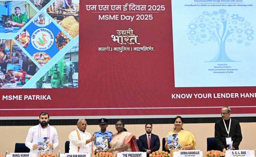 राष्ट्रपति ने कहाकि एमएसएमई की स्थिरता केलिए नवाचार बहुत महत्वपूर्ण है, एमएसएमई द्वारा जमीनीस्तर पर नवाचार को बढ़ावा देने से स्थानीय संसाधनों से स्थानीय मुद्दों के किफायती समाधान मिल सकते हैं। राष्ट्रपति ने हाल के वर्ष में एमएसएमई क्षेत्रमें महिलाओं की भागीदारी में वृद्धि पर प्रसन्नता व्यक्त की। उन्होंने कहाकि देश के सर्वांगीण विकास केलिए इस क्षेत्रमें अधिक से अधिक महिलाओं की भागीदारी आवश्यक है। उन्होंने युवा महिलाओं से उद्यम स्थापित करने और आत्मनिर्भर बनने का आग्रह किया। राष्ट्रपति ने कहाकि एमएसएमई भारत की आर्थिक वृद्धि में महत्वपूर्ण योगदान दे रहे हैं, लेकिन वे ऊर्जा खपत और उत्सर्जन के एक बड़े हिस्से केलिए भी जिम्मेदार हैं। राष्ट्रपति ने कहाकि एमएसएमई क्षेत्रमें हरित प्रौद्योगिकी को बढ़ावा देना समय की मांग है, इससे न केवल एमएसएमई की स्थिरता और प्रतिस्पर्धात्मकता बढ़ेगी, बल्कि देश को अपने जलवायु लक्ष्यों को प्राप्त करने में भी मदद मिलेगी। इस अवसर पर सूक्ष्म, लघु और मध्यम उद्यम मंत्री जीतनराम मांझी, राज्यमंत्री शोभा करंदलाजे और गणमान्य नागरिक उपस्थित थे।