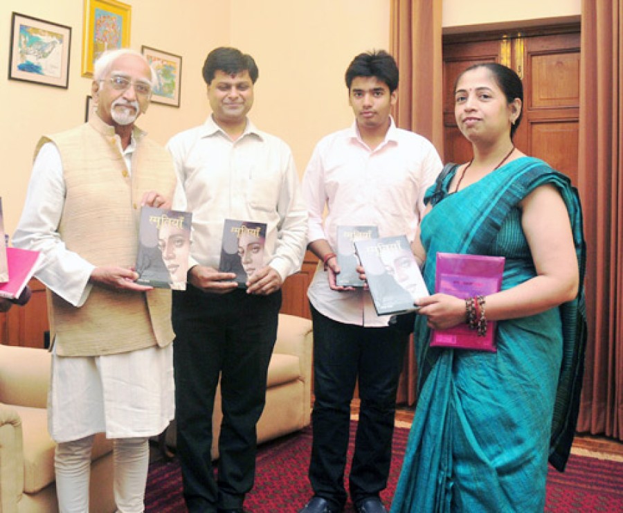 नई दिल्ली। उपराष्ट्रपति एम हामिद अंसारी ने अपने निवास पर लेखिका एवं वृतचित्र निर्मात्री गरिमा संजय की पुस्तक “स्मृतियाँ” का लोकार्पण किया, इस अवसर पर उन्होंने लेखिका को एक उत्कृष्ट पुस्तक लिखने के लिए बधाई दी और उनके बेहतर रचनात्मक भविष्य के लिए शुभकामनाएं दीं। उपराष्ट्रपति ने कहा कि जीवन की स्मृतियां ही मानव की सबसे बड़ी धरोहर होती हैं, अपनी खुशनुमा स्मृतियों में व्यक्ति विकट वर्तमान को भी भूल जाता है, स्मृतियों के ऐसे ही तानों-बानों से बुना है-मर्मस्पर्शी उपन्यास “स्मृतियाँ”।