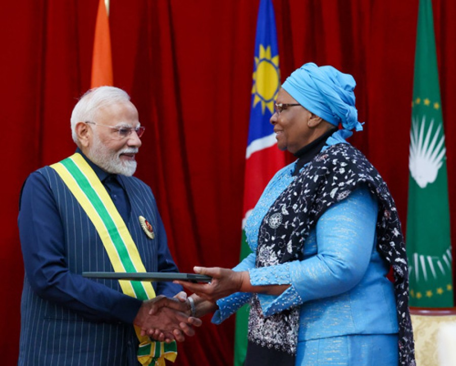 प्रधानमंत्री नरेंद्र मोदी ने कहाकि भारत हमेशा अफ्रीका की प्रगति केलिए काम करेगा, जैसाकि उसने जी-20 की अध्यक्षता के दौरान किया था, जब अफ्रीकी संघ को इस समूह का स्थायी सदस्य बनाया गया था। उन्होंने कहाकि भारत को नामीबिया और महाद्वीप के अन्य देशों केसाथ अपने विकास के अनुभव साझा करने का सौभाग्य प्राप्त हुआ है, भारत क्षमता निर्माण, कौशल विकास, स्थानीय नवाचार को बढ़ावा देने और अफ्रीका के एजेंडा-2063 का समर्थन करने केलिए प्रतिबद्ध है। प्रधानमंत्री ने कहाकि हमारे बच्चों को न केवल वह आज़ादी विरासत में मिले, जिसके लिए हमने संघर्ष किया, बल्कि वह भविष्य भी मिले जिसका निर्माण हम मिलकर करेंगे। प्रधानमंत्री और राष्ट्रपति नंदी-नदैतवा ने इस अवसर पर द्विपक्षीय संबंधों के गौरवशाली इतिहास का स्मरण किया। प्रधानमंत्री ने इस वर्ष नामीबिया के संस्थापक डॉ सैम नुजोमा के निधन पर शोक व्यक्त किया। दोनों नेताओं ने रक्षा, समुद्री सुरक्षा, डिजिटल प्रौद्योगिकी और यूपीआई, कृषि, स्वास्थ्य और फार्मा, ऊर्जा तथा महत्वपूर्ण खनिजों के क्षेत्रों सहित द्विपक्षीय संबंधों को और मजबूत करने पर चर्चा की।