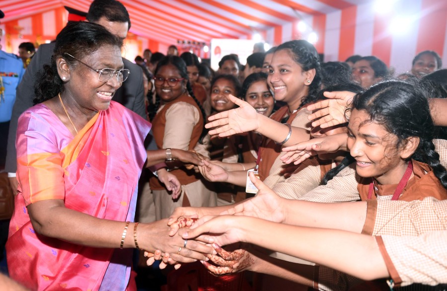 राष्ट्रपति ने कहाकि भारत में अमृतकाल चल रहा है, वर्ष 2047 तक देश को विकसित राष्ट्र बनाना हमारा राष्ट्रीय लक्ष्य है और राष्ट्र प्रथम की भावना हमारी सबसे बड़ी ताकत है। उन्होंने कहाकि हमारे जवान, किसान, वैज्ञानिक, इंजीनियर, डॉक्टर और विभिन्न क्षेत्रोंमें सक्रिय हैं और विश्व में भारत का गौरव बढ़ाने की भावना से काम कर रहे हैं। उन्होंने छात्रों को इनसे प्रेरणा लेने और अपने ज्ञान, कौशल और समर्पण से देश के विकास में योगदान देने का आग्रह किया। इसके बाद एक अन्य कार्यक्रम में राष्ट्रपति ने कटक में रेवेनशॉ गर्ल्स हाई स्कूल की तीन इमारतों के जीर्णोद्धार की आधारशिला रखी। उन्होंने कहाकि शिक्षा की गुणवत्ता और बेहतर बुनियादी ढांचा एक अच्छे शैक्षिक वातावरण का निर्माण करते हैं। उन्होंने विश्वास व्यक्त कियाकि जीर्णोद्धार परियोजना के पूरा होने पर इस विद्यालय की सुविधाएं औरभी बेहतर हो जाएंगी। राष्ट्रपति ने बालिका शिक्षा से सम्बंधित परियोजना केलिए केंद्र और राज्य सरकारों की सराहना की।