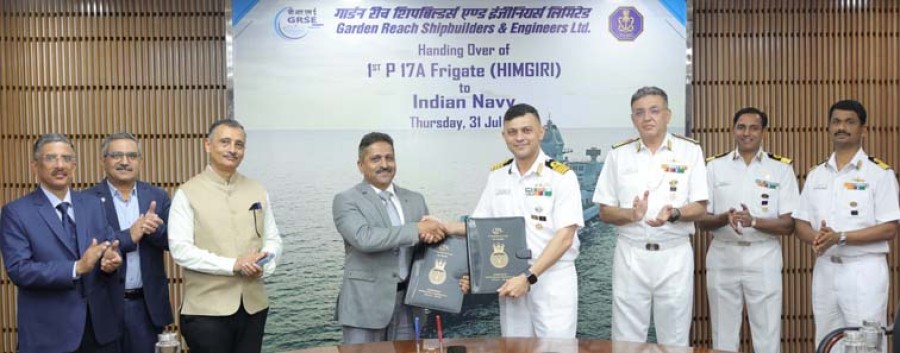 कोलकाता। युद्धपोत प्रोजेक्ट 17ए का स्वदेशी उन्नत एवं अत्याधुनिक रक्षा विशेषताओं से लैस युद्धपोत हिमगिरी को जीआरएसई कोलकाता में समारोहपूर्वक भारतीय नौसेना सेवा केलिए समर्पित कर दिया गया। भारत की युद्धपोत डिजाइन और निर्माण में आत्मनिर्भरता में मील का पत्थर हासिल करने वाली इस उपलब्धि में हिमगिरि युद्धपोत यार्ड 3022, नीलगिरि श्रेणी परियोजना 17ए का तीसरा जहाज है, जो गार्डन रीच शिपबिल्डर्स एंड इंजीनियर्स में निर्मित इस श्रेणी का पहला पोत है। नौसेना के प्रोजेक्ट 17ए फ्रिगेट बहुमुखी मिशन युद्धपोत हैं, जिन्हें समुद्री इलाके में वर्तमान एवं भविष्य की चुनौतियों से निपटने केलिए तैयार किया गया है। हिमगिरि पूर्ववर्ती आईएनएस हिमगिरि का नया अवतार है, जो एक लिएंडर श्रेणी का फ्रिगेट था, जिसे 30 वर्ष की शानदार राष्ट्र सेवा केबाद 6 मई 2005 को सेवामुक्तकर दिया गया था।