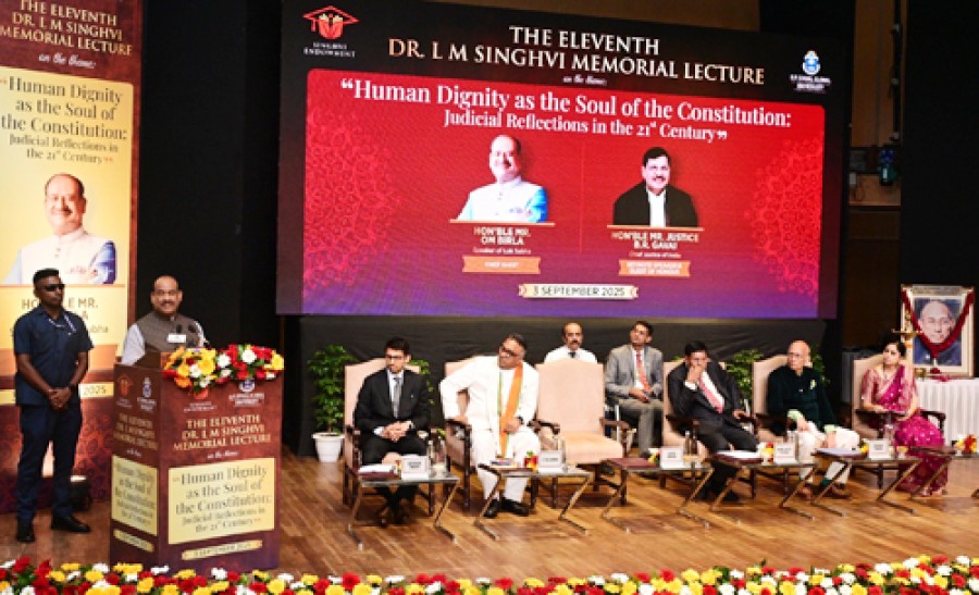 भारत के मुख्य न्यायाधीश बीआर गवई डॉ एलएम सिंघवी स्मृति व्याख्यान में मुख्य अतिथि थे। उन्होंने कहाकि न्यायपालिका ने मानवीय गरिमा को संविधान की आत्मा माना है, इसे सर्वव्यापी सिद्धांत माना है, जो संविधान की मूल भावना और दर्शन को रेखांकित करता है। उन्होंने कहाकि संविधान निर्माताओं केलिए मानवीय गरिमा एक केंद्रीय चिंता का विषय थी, यह एक न्यायपूर्ण और समतावादी समाज की परिकल्पना से गहराई से जुड़ी हुई है। बीआर गवई ने कहाकि मानवीय गरिमा के विमर्श का एक महत्वपूर्ण पहलू यह हैकि यह व्यक्ति की स्वायत्तता विशेष रूपसे अपने जीवन केबारे में निर्णय लेने की स्वतंत्रता से आंतरिक रूपसे जुड़ा हुआ है, इसमें चुनाव, व्यक्तिगत स्वतंत्रता और आत्मनिर्णय की स्वतंत्रता शामिल है। उन्होंने कहाकि मानव गरिमा लोकतंत्र के मूल मूल्य के रूपमें उभरती है, जो लोकतांत्रिक समाज के कामकाज केलिए केंद्रीय है। डॉ एलएम सिंघवी स्मृति व्याख्यान में भाषाविद्, राजनयिक, वकील, सांसद, लेखक, सर्वधर्म प्रतिपादक और सांस्कृतिक विद्वान, विचारक, वक्ता, उपस्थित थे।