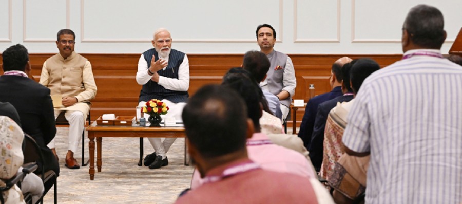 नई दिल्ली। प्रधानमंत्री नरेंद्र मोदी ने शिक्षक दिवस पर राष्ट्रीय शिक्षक सम्मान से नवाजे गए शिक्षकों से प्रधानमंत्री आवास दिल्ली में मुलाकात की। प्रधानमंत्री ने शिक्षकों केसाथ प्रेरक संवाद में समाज में शिक्षकों केप्रति स्वाभाविक सम्मान की सराहना की और उन्हें सर्वोच्च राष्ट्र सेवक बताया। उन्होंने कहाकि शिक्षकों का सम्मान केवल एक रस्म नहीं है, बल्कि उनके आजीवन समर्पण और प्रभाव का सम्मान है। प्रधानमंत्री ने राष्ट्रीय शिक्षक सम्मान प्राप्त करनेवाले शिक्षकों को बधाई दी और कहाकि इस सम्मान केलिए उनका चयन उनकी कड़ी मेहनत और अटूट समर्पण का प्रतीक है। प्रधानमंत्री ने कहाकि शिक्षक न केवल वर्तमान को आकार देते हैं, बल्कि राष्ट्र के भविष्य को भी गढ़ते हैं, जिससे उनकी भूमिका राष्ट्रीय सेवा के सर्वोच्च रूपों में से एक बन जाती है। उन्होंने कहाकि इसवर्ष के सम्मानित शिक्षकों की तरह देशभर के लाखों शिक्षक ईमानदारी, प्रतिबद्धता और सेवा भावना केसाथ शिक्षा केप्रति समर्पित हैं। उन्होंने राष्ट्र निर्माण में शामिल शिक्षकों के अनुकरणीय योगदान को भी नमन किया।