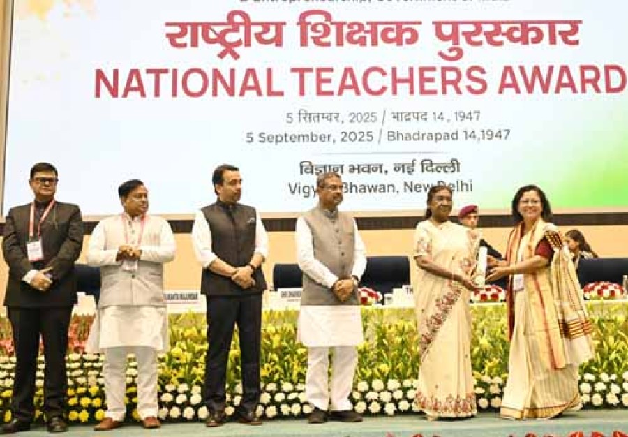 नई दिल्ली। राष्ट्रपति द्रौपदी मुर्मू ने आज भारत के पूर्ववर्ती राष्ट्रपति डॉ सर्वपल्ली राधाकृष्णन के जन्मदिन शिक्षक दिवस पर उत्कृष्ट शैक्षिक कार्यों केलिए देशभर से चयनित शिक्षकों को दिल्ली में राष्ट्रीय सम्मान पत्र प्रदान किए। राष्ट्रपति ने इस अवसर पर कहाकि डॉ सर्वपल्ली राधाकृष्णन चाहते थेकि देशवासी उन्हें शिक्षक के रूपमें याद करें, इसीलिए उनकी जयंती को आजके दिन शिक्षक दिवस के रूपमें मनाया जाता है। राष्ट्रपति ने कहाकि ‘आचार्य देवो भव’ की हमारी प्राचीन परंपरा के अनुसार शिक्षक को सर्वाधिक महत्व देने के उनके उदात्त विचार केलिए मैं देशवासियों की ओर से डॉ सर्वपल्ली राधाकृष्णन को सादर नमन करती हूं। राष्ट्रपति को यह देखकर प्रसन्नता हुईकि स्कूल स्तरपर सम्मानित शिक्षिकाओं की प्रभावशाली संख्या है, जो शिक्षकों की संख्या से थोड़ा ही कम है, यहभी महत्वपूर्ण हैकि ग्रामीण क्षेत्रके विद्यालयों के सम्मानित शिक्षकों की संख्या, शहरी क्षेत्रके विद्यालयों के शिक्षकों की संख्या से अधिक है।