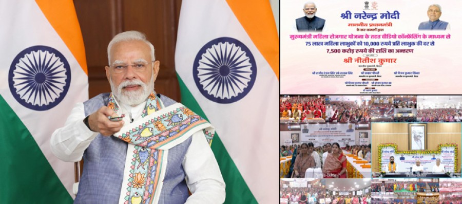 पटना/ नई दिल्ली। प्रधानमंत्री नरेंद्र मोदी ने आज बिहार की मुख्यमंत्री महिला रोज़गार योजना का शुभारंभ किया। वीडियो कॉंफ्रेंसिंग से जनसमूह को संबोधित करते हुए नवरात्र की बधाई और शुभकामनाएं दीं। प्रधानमंत्री की खुशी और भावनाओं का उस वक्त कोई ठिकाना नहीं रहा, जब लाभार्थी महिलाओं ने उनसे बातचीत करते हुए उन्हें ‘मोदी भईया’ कहकर संबोधित किया। प्रधानमंत्री ने बिहार की महिलाओं केसाथ होने पर भारी प्रसन्नता व्यक्त की और कहाकि आज मुख्यमंत्री महिला रोज़गार योजना का शुभारंभ हो रहा है। नरेंद्र मोदी ने बताया कि 75 लाख महिलाएं पहले ही इस पहल से जुड़ चुकी हैं और इन 75 लाख महिलाओं में से प्रत्येक के बैंक खाते में आज एक साथ ₹10,000 हस्तांतरित कर दिए गए हैं। नरेंद्र मोदी ने कहाकि इस प्रक्रिया में उनके मन में दो विचार आए। पहला-आज का दिन बिहार की महिलाओं और बेटियों केलिए सचमुच एक महत्वपूर्ण पड़ाव है और दूसरा-अगर सरकार ने ग्यारह साल पहले जनधन योजना शुरू करने का संकल्प न लिया होता, अगर 30 करोड़ से ज़्यादा महिलाओं ने इस योजना के तहत बैंक खाते न खोले होते और अगर ये खाते मोबाइल फ़ोन और आधार से न जुड़े होते, तो आज इतनी धनराशि सीधे उनके बैंक खातों में स्थानांतरित करना संभव नहीं होता।