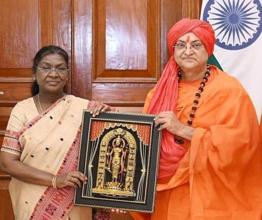 नई दिल्ली। श्रीदशनाम पंचायती जूना अखाड़े के महामंडलेश्वर डॉ उमाकांतानंद सरस्वती महाराज, संस्थापक अध्यक्ष श्रीराम डिवाईन चैरिटेबल ट्रस्ट हरिद्वार और शाश्वतम् फाउंडेशन मारीशस के सानिध्य में शाश्वतम् परिवार के प्रतिनिधियों ने राष्ट्रपति द्रौपदी मुर्मू से राष्ट्रीय मुद्दों पर शिष्टाचार भेंट की। प्रतिनिधिमंडल में भारतीय जनता पार्टी के नेता भूतपूर्व राज्यसभा सांसद और एससी/ एसटी मोर्चा के राष्ट्रीय अध्यक्ष समीर उरांव, वरिष्ठ भाजपा नेता राकेश भास्कर झारखंड, हरिद्वार शाश्वतम् परिवार के राष्ट्रीय संयोजक डॉ जितेंद्र सिंह, वरिष्ठ आयुर्वेदिक वैद्य दीपक कुमार आदि शामिल थे। महामंडलेश्वर ने राष्ट्रपति को आराध्य भगवान श्रीराम का स्मृतिचिन्ह भेंट किया।