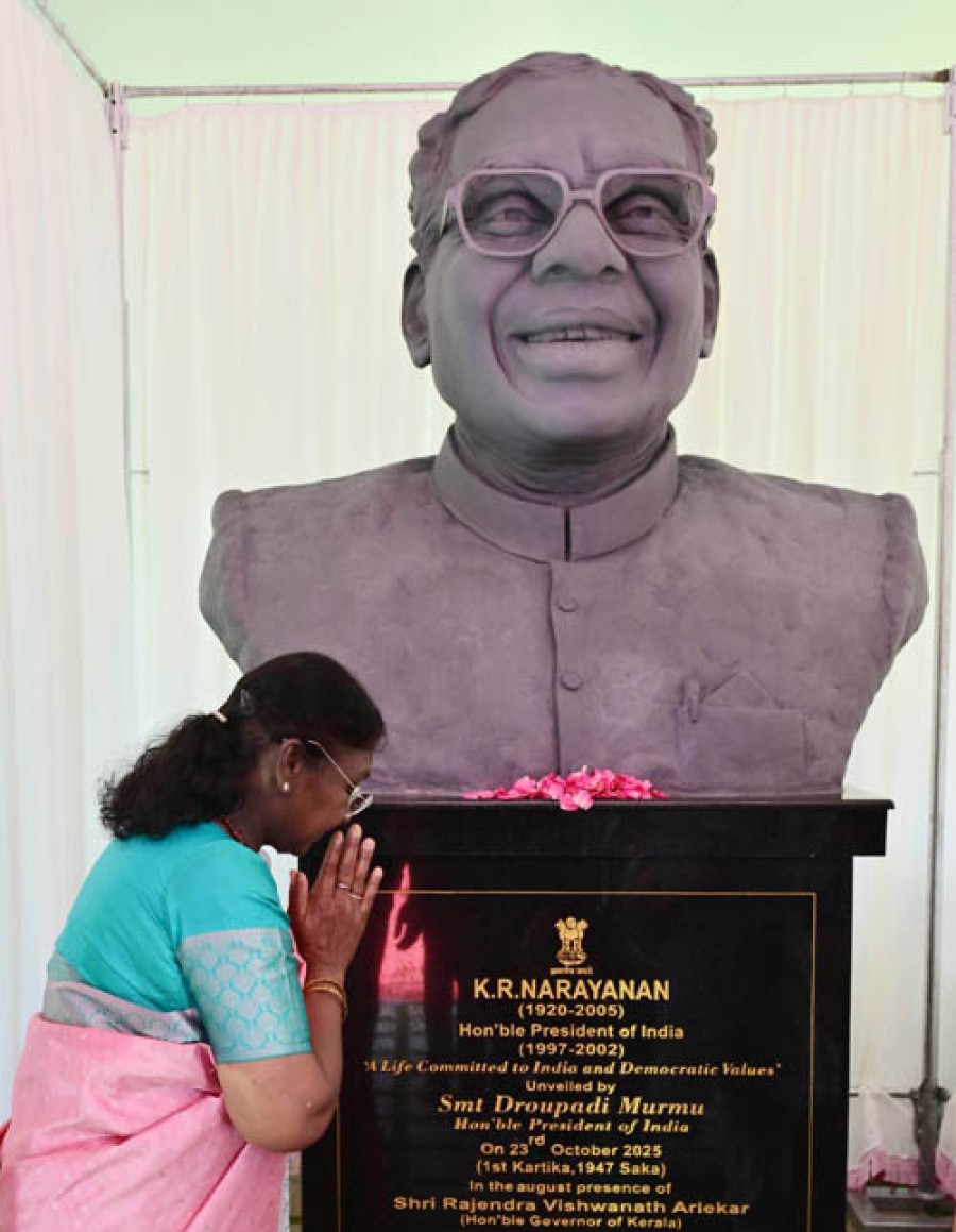 तिरुवनंतपुरम। राष्ट्रपति द्रौपदी मुर्मु ने तिरुवनंतपुरम राजभवन में भारत के पूर्व राष्ट्रपति केआर नारायणन की प्रतिमा का अनावरण किया। राष्ट्रपति ने कार्यक्रम को संबोधित करते हुए कहाकि केआर नारायणन का जीवन साहस, दृढ़ता और आत्मविश्वास की गाथा है, असीम समर्पण और शिक्षा की शक्ति से वह देश के सर्वोच्च संवैधानिक पद पर आसीन हुए, उनकी शैक्षणिक उत्कृष्टता इसका प्रतीक थीकि उद्देश्यपूर्ण मार्गदर्शन में दृढ़ संकल्प और अवसर से सबकुछ अर्जित किया जा सकता है। राष्ट्रपति ने कहाकि राजनीति में प्रवेश करने से पहले केआर नारायणन ने भारतीय विदेश सेवा में एक विशिष्ट करियर बनाया, उन्होंने भारत के शांति, न्याय और सहयोग के मूल्यों को पूरी सत्यनिष्ठा से कायम रखा। राष्ट्रपति ने कहाकि केआर नारायणन हमेशा निष्पक्षता और समावेशिता के सिद्धांतों केप्रति अडिग रहे।