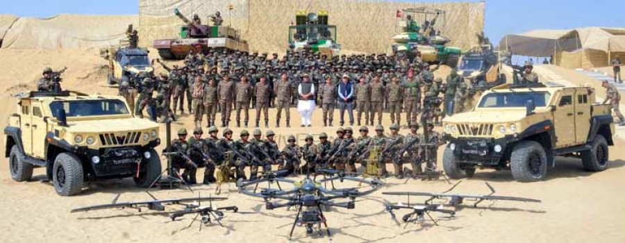 लौंगेवाला में रक्षामंत्री ने प्रतिष्ठित लौंगेवाला युद्ध स्थल पर पुष्पांजलि अर्पित की और भारतीय सेना के शहीद बहादुरों को श्रद्धांजलि दी। राजनाथ सिंह ने मेजर (बादमें ब्रिगेडियर) कुलदीप सिंह चांदपुरी की स्मृति को समर्पित एक श्रव्यदृश्य कक्ष 'चांदपुरी हॉल' का उद्घाटन किया, जिन्होंने 1971 में लौंगेवाला के युद्ध के दौरान वीरतापूर्ण रक्षा का नेतृत्व किया था। उन्होंने युद्ध में भाग लेनेवाले दिग्गजों को भी सम्मानित किया। रक्षामंत्री ने इस ऐतिहासिक स्थल को राष्ट्रीय गौरव के प्रतीक के रूपमें विकसित करने की अनेक बुनियादी ढांचा परियोजनाओं की समीक्षा की, जो भारतीय सेना की वीरता और लचीलेपन को प्रदर्शित करेगा। राजनाथ सिंह ने एक गतिशील क्षमता प्रदर्शन अभ्यास भी देखा, जिसमें भैरव बटालियन और अश्नी प्लाटून जैसे नए संगठनों के एकीकृत उपयोग केसाथ भारतीय सेना में ऑपरेशनों के संचालन केलिए शामिल की गई नवीनतम तकनीकी संपत्तियों का प्रदर्शन किया गया। यह प्रदर्शन विरासत और नवाचार के सहज मिश्रण का प्रतीक था, जिसने भारतीय सेना के क्षमता विकास और बल आधुनिकीकरण पर ज़ोर दिया।