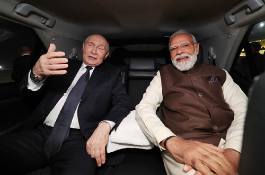 नई दिल्ली। प्रधानमंत्री नरेंद्र मोदी ने दो दिवसीय महत्वपूर्ण भारत दौरे पर आए रूस के राष्ट्रपति व्लादिमीर पुतिन की हवाईअड्डे पर अगवानी करते हुए उनका गर्मजोशी से जोरदार स्वागत किया। प्रधानमंत्री और राष्ट्रपति व्लादिमीर पुतिन ने हवाई अड्डे से प्रस्थान करते समय एक ही कार में यात्रा की। प्रधानमंत्री ने सोशल मीडिया प्लेटफॉर्म एक्स पर साझा करते हुए कहाकि भारत-रूस मित्रता समय की कसौटी पर खरी उतरी है, जिससे हमारे लोगों को अत्यधिक लाभ हुआ है। उन्होंने राष्ट्रपति व्लादिमीर पुतिन को रूसी भाषा में श्रीमद्भागवत गीता की प्रति भेंट की और कहाकि गीता के उपदेश विश्वभर के लाखों लोगों को प्रेरणा देते हैं। प्रधानमंत्री नरेंद्र मोदी और राष्ट्रपति व्लादिमीर पुतिन ने हैदराबाद हाउस दिल्ली में आज जॉइंट प्रेस वक्तव्य में दोनों देशों केबीच घनिष्ठ, समृद्ध और ऐतिहासिक संबंधों की मजबूती को दोहराते हुए कहाकि हमारे द्विपक्षीय संबंध कई ऐतिहासिक मील के पत्थर के दौर से गुजर रहे हैं। नरेंद्र मोदी ने कहाकि भारत और रूस के तेईसवें शिखर सम्मेलन में राष्ट्रपति व्लादिमीर पुतिन का स्वागत करते हुए उन्हें बहुत खुशी है, ठीक 25 वर्ष पहले राष्ट्रपति व्लादिमीर पुतिन ने भारत-रूस केबीच रणनीतिक साझेदारी की नींव रखी थी और 15 वर्ष पहले 2010 में इस साझेदारी को ‘विशेष और विशेषाधिकार प्राप्त रणनीतिक साझेदारी’ का दर्जा मिला।