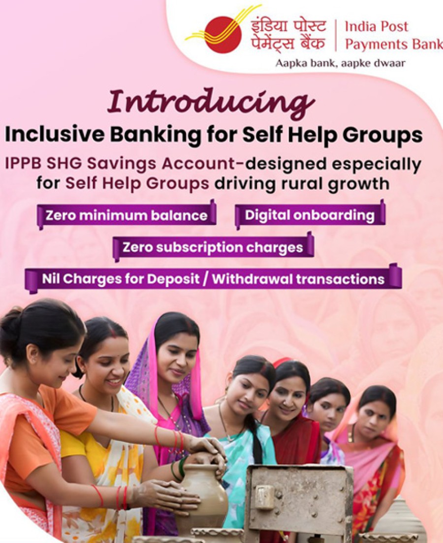 गौरतलब हैकि भारत में ग्रामीण आर्थिक परिवर्तन को गति देने में स्वयं सहायता समूहों की अहम भूमिका है और ये ग्रामीण विकास मंत्रालय केतहत राष्ट्रीय ग्रामीण आजीविका मिशन जैसी प्रमुख पहल और राष्ट्रीय कृषि एवं ग्रामीण विकास बैंक-नाबार्ड से समर्थित कार्यक्रमों से जुड़े हुए हैं। डाक विभाग के व्यापक डाक नेटवर्क और डिजिटल क्षमताओं के जरिए आईपीपीबी का लक्ष्य डाककर्मियों और ग्रामीण डाक सेवकों के बड़े नेटवर्क की सहायता से डिजिटल माध्यम से स्वयं सहायता समूहों केलिए घर-घर बैंकिंग सेवा वित्तीय पहुंच मुहैया कराना है। इंडिया पोस्ट पेमेन्ट्स बैंक स्वयं सहायता समूह बचत खाते में किफायती शून्य बैलेंस, शून्य शुल्क खाते, इसमें शामिल होने की डिजिटल सक्षम सरलीकृत प्रक्रिया, डाकघरों और डाककर्मियों या ग्रामीण डाक सेवकों के विशाल नेटवर्क जैसी सेवाएं हैं। इसकी विशेषताओं में हैकि न्यूनतम प्रारंभिक जमा राशि की आवश्यकता नहीं, मासिक औसत शेष राशि की आवश्यकता नहीं, अधिकतम राशि सीमा 2 लाख रुपये है, लागू बचत दरों के अनुसार त्रैमासिक ब्याज भुगतान, नकद जमा और निकासी पर कोई शुल्क नहीं, प्रतिमाह निःशुल्क खाता विवरण, खाता बंद करने पर कोई शुल्क नहीं और क्यूआर कार्ड जारी करने पर कोई शुल्क नहीं है।