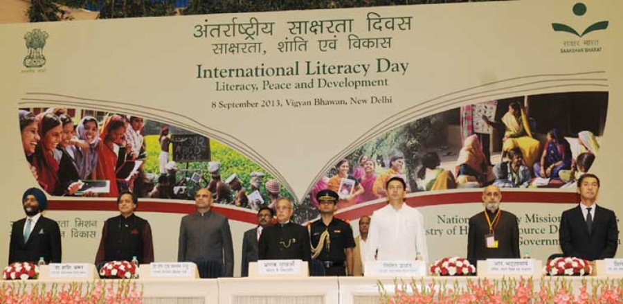 उन्होंने कहा कि साक्षरत कार्यक्रम की सफलता लोगों की इच्छाशक्ति और सहयोग पर निर्भर करती है। राष्ट्रपति ने साक्षरता मिशन में उल्लेखनीय योगदान करने के लिए राज्यों, जिलों और ग्राम पंचायतों के अधिकारियों को साक्षर भारत राष्ट्रीय पुरस्कार प्रदान किए। इस अवसर पर मानव संसाधन विकास मंत्री एमएम पल्लम राजू ने कहा कि साक्षर भारत कार्यक्रम के अंतर्गत सरकार ने 2017 तक 15 से 35 वर्ष आयु की सभी महिलाओं को साक्षर बनाने का लक्ष्य रखा है। मानव संसाधन राज्यमंत्री जितिन प्रसाद और मानव संसाधन राज्यमंत्री शशि थरूर भी इसमें मौजूद थे।