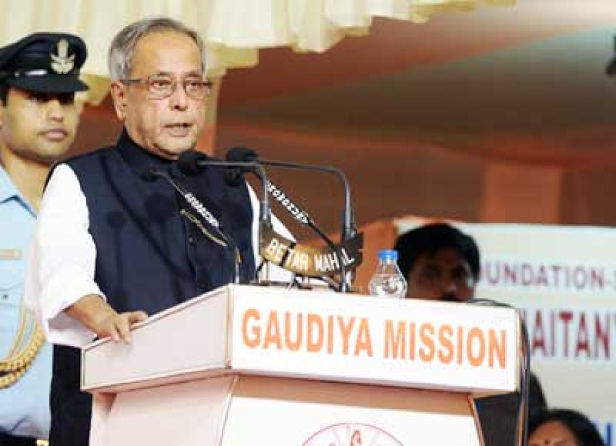 कोलकाता। राष्ट्रपति प्रणब मुखर्जी ने आज गौड़ीय मठ कोलकाता में चैतन्य महाप्रभु संग्रहालय के शिलान्यास समारोह में कहा कि मानव जाति का अशांत और उतार-चढ़ाव से परिपूर्ण इतिहास हमेशा से संतों के मार्गदर्शन से निर्देशित होता रहा है। उन्होंने कहा कि चैतन्य महाप्रभु ने मानव जाति की सेवा के लिए शासकों को संतों में परिणत करने का कार्य किया। यीशु मसीह, भगवान बुद्ध, पैगंबर मोहम्मद, गुरु नानक और चैतन्य महाप्रभु सभी ने विश्व बंधुत्व के मूल्यों को बढ़ावा दिया और इन संतों ने उस परीक्षा की घड़ी में यह कार्य किया जब मानवता की रक्षा के लिए इसकी सबसे ज्यादा आवश्यकता थी।