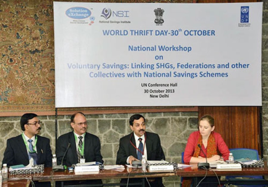 नई दिल्ली। राष्ट्रीय बचत संस्थान ने संयुक्त राष्ट्र विकास कार्यक्रम के साथ मिलकर कल एक राष्ट्रीय स्तर की कार्यशाला का आयोजन किया। स्वैच्छिक बचत से संबंधित इस कार्यशाला का उद्देश्य स्वयं सहायता समूहों तथा अन्य समूहों को राष्ट्रीय बचत योजना से जोड़ना है। कार्यशाला का आयोजन विश्व मितव्ययिता दिवस का पालन करने के उद्देश्य से किया गया। संयुक्त राष्ट्र विकास कार्यक्रम की वरिष्ठ अधिकारी एलीक्सैंड्रा सोलोवीव ने प्रतिभागियों का स्वागत करते हुए कहा कि राष्ट्रीय बचत योजना की शुरू की गई ई-चर्चा में उठाए गए मुद्दों का हल इस कार्यशाला में ढूंढा जा सकता है। भारत सरकार के वित्त मंत्रालय में संयुक्त सचिव (बजट) डॉ रजत भार्गव ने कार्यशाला का उद्घाटन करते हुए कहा कि राष्ट्रीय बचत योजना स्वयंसेवी समूहों के लिए उपयोगी साबित हो सकती है।