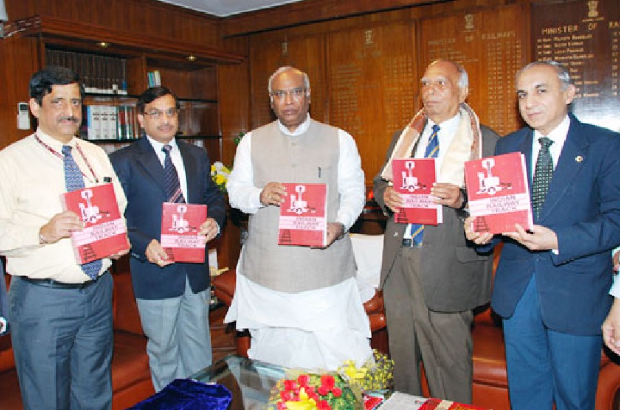 नई दिल्ली। रेल मंत्री मल्लिकार्जुन खरगे ने रेल पटरियों के डिजाइन, निर्माण एवं रखरखाव से संबंधित पुस्तक रूबी जुबली के 40वें वार्षिक संस्करण का आज यहां विमोचन किया। इस पुस्तक को मशहूर सिविल इंजीनियर एमएम अग्रवाल ने लिखा है, जो भारतीय रेलवे में 33 वर्षो की सेवा के बाद चीफ इंजीनियर के पद से सेवानिवृत हुये हैं। यह पुस्तक 1973 में लिखी गई थी और यह इसका 19वां संशोधित संस्करण है।
