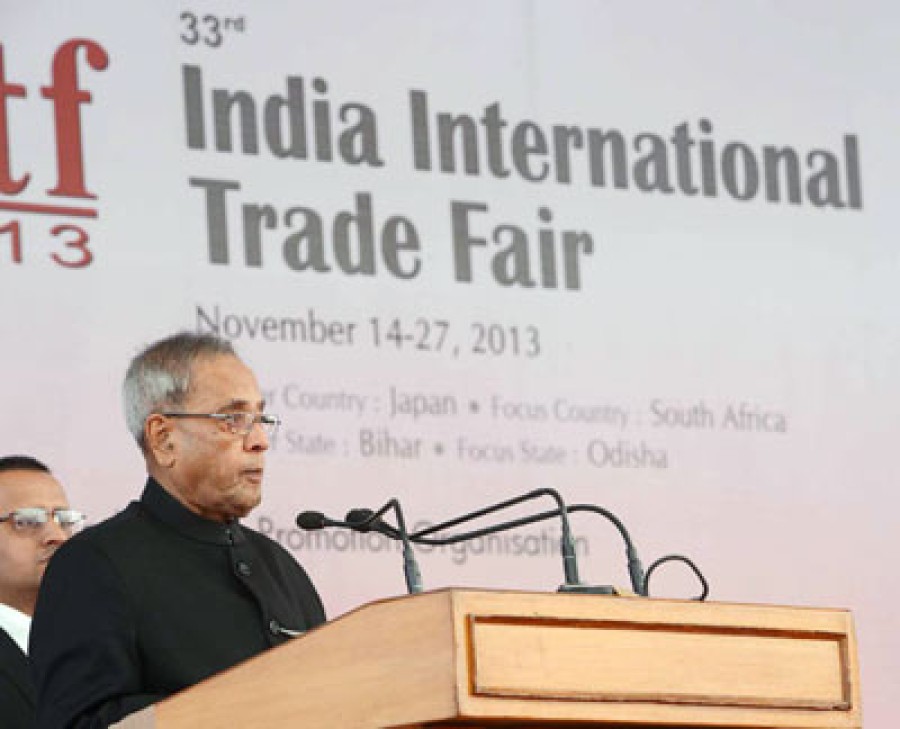 नई दिल्ली। राष्ट्रपति प्रणब मुखर्जी ने कल दिल्ली में 33वें भारतीय अंतर्राष्ट्रीय व्यापार मेले का उद्घाटन किया। इस अवसर पर राष्ट्रपति ने कहा कि आईआईटीएफ 2013 में सम्रग सामाजिक-आर्थिक विकास के विभिन्न पहलुओं पर विशेष ध्यान देने के साथ-साथ सेवा क्षेत्र की उपलब्धियों को उजागर किया गया है। इस मेले में रोज़गार के अवसर सृजित करने, प्रौद्योगिकी को आगे बढ़ाने और वैश्विक संप्रेषण बाधाओं को दूर करने में योगदान देने की काफी संभावनाएं हैं। उन्होंने कहा कि इस वर्ष मेले के शीर्षक-'सम्रग विकास' ने देश के विभिन्न भागों से आए सैकड़ों उद्दयमियों को एक मंच पर ला दिया है, ताकि वे मेले में अपने उत्पाद दिखा सकें।