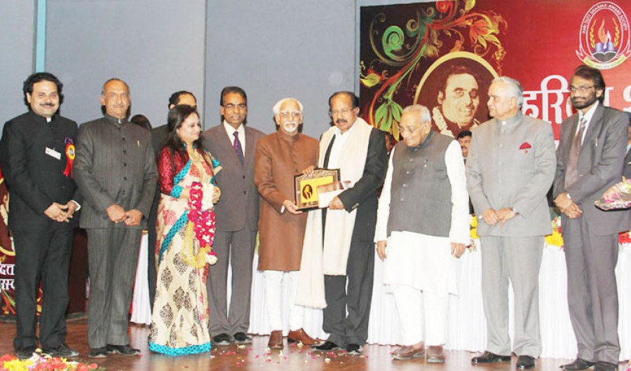 नई दिल्‍ली। उप राष्‍ट्रपति एम हामिद अंसारी ने एक समारोह में केंद्रीय पेट्रोलियम और प्राकृतिक गैस तथा पर्यावरण और वन मंत्री डॉ एम वीरप्‍पा मोइली को पंडित हरिदत्‍त शर्मा पुरस्‍कार प्रदान किया। इस अवसर पर डॉ अंसारी ने कहा कि साहित्‍य के क्षेत्र में डॉक्‍टर मोइली की उपलब्धि और कर्नाटक लोकसेवा और देश को उनके दशकों पुराने योगदान के कारण वह पंडित हरिदत्‍त शर्मा पुरस्‍कार के पात्र हैं। उनके ज्ञान और शासन और प्रशासन में उनके कौशल के कारण सरकार ने उन्‍हें दूसरे प्रशासनिक सुधार आयोग का अध्‍यक्ष नियुक्‍त किया।